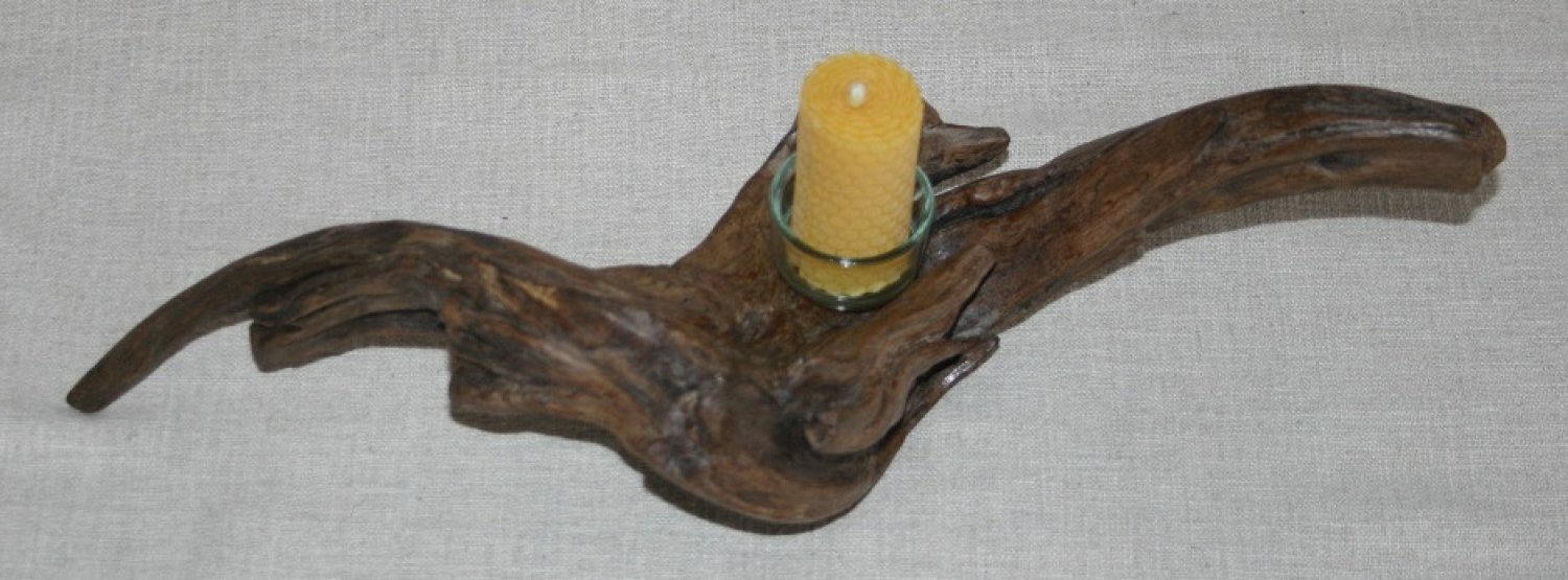 Mes bougeoirs sont fait avec du bois flotté ou trouvé dans les bois. Je les décape naturellement, une forme prend forme et je les encaustique. Je leur trouve un support pour pouvoir mettre une de mes bougies.