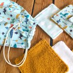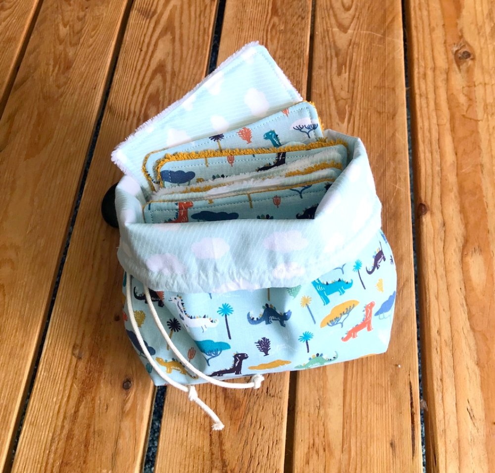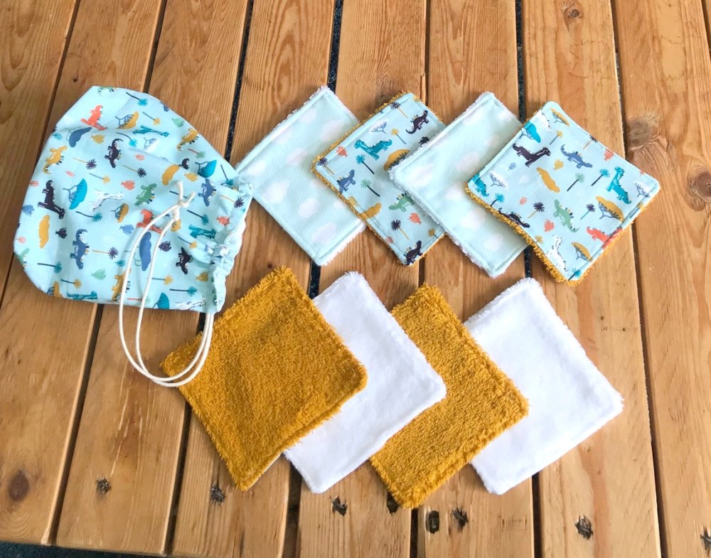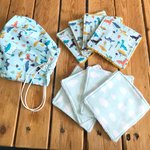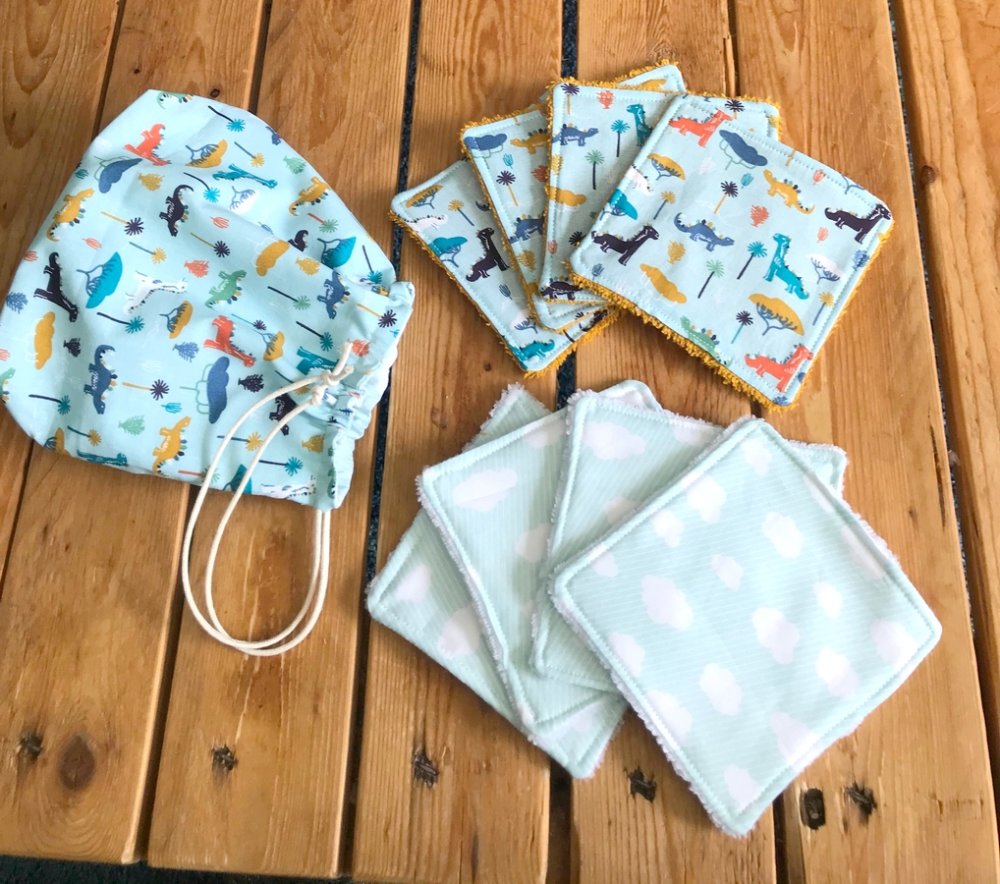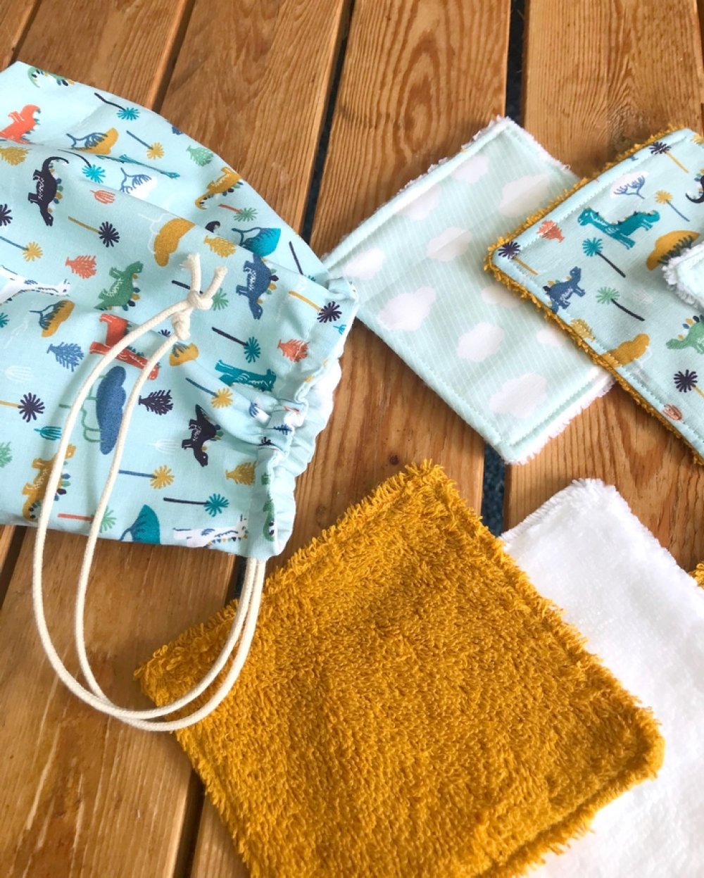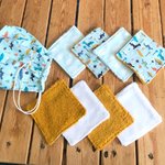 8 lingettes lavables, lingettes réutilisables ,panier lingettes, 8 lingettes et son sac assorti