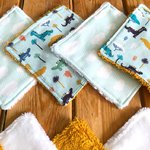 elles sont parfaites pour la toilette de bébé et pour les soins démaquillants des mamans, elles sont réutilisables après lavage.