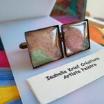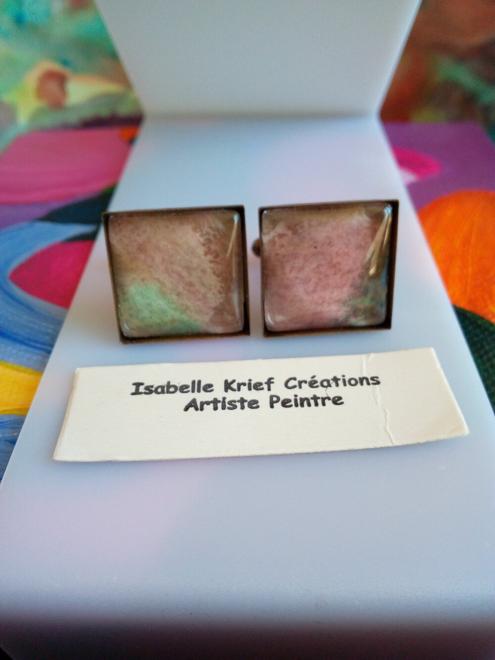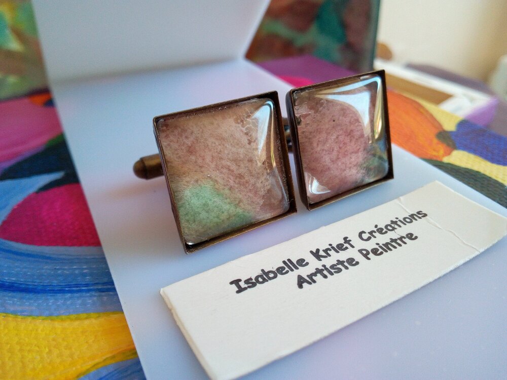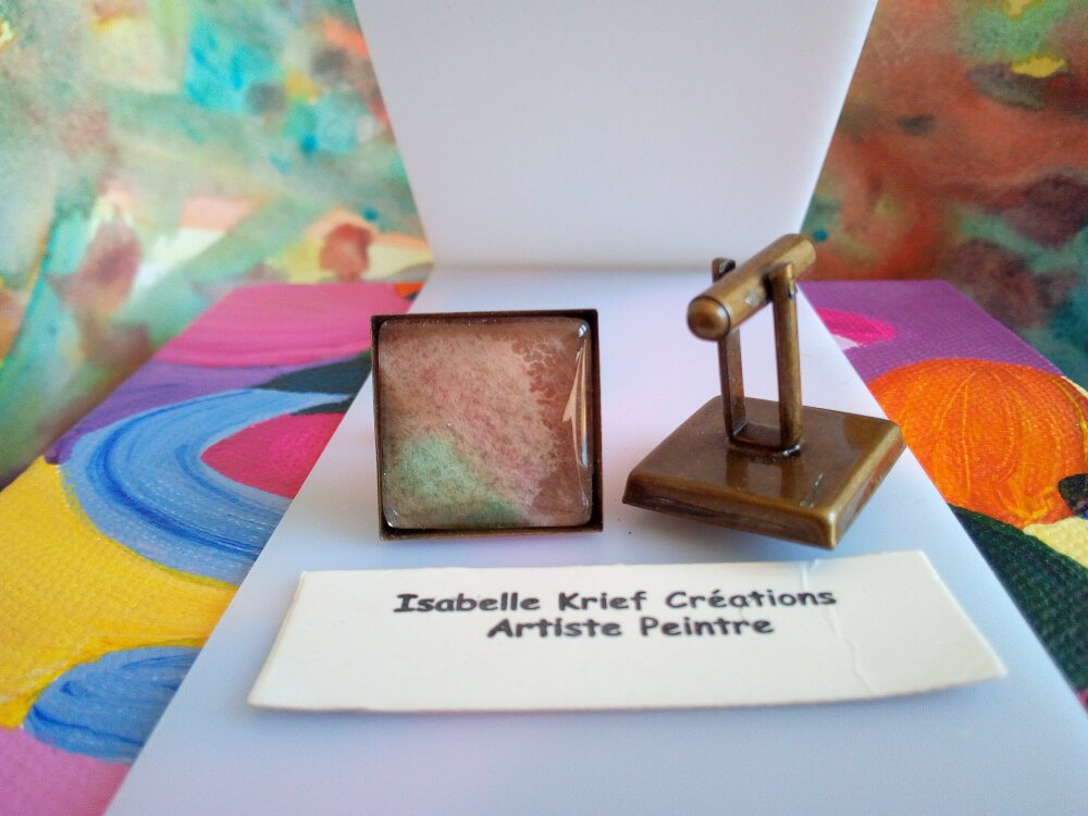 Aquarelle ,Boutons manchette laiton bronze avec cabochons carres,fait mains en france,cadeau fete anniversaire noel,boho bobo