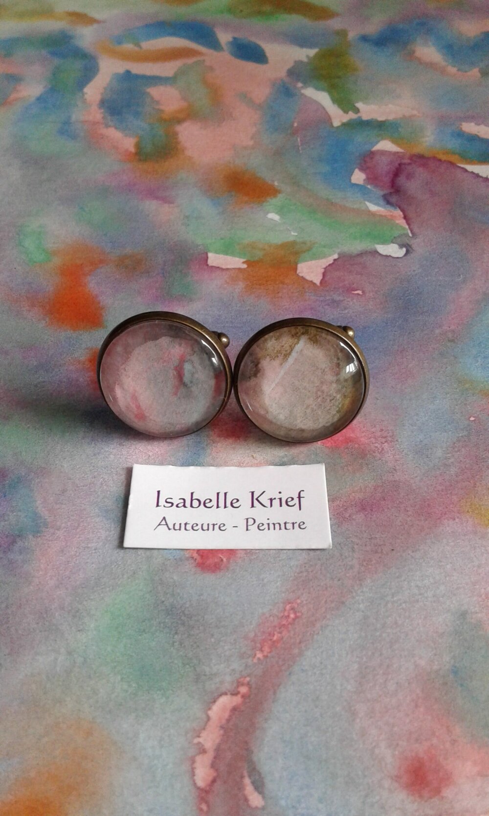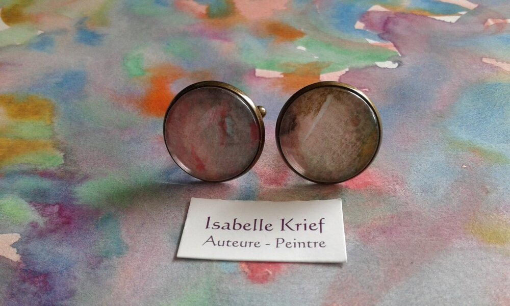 morceaux d aquarelle originale,artiste peintre française,boutons de manchette,ronds 25mm,rouge marron vert bleu,laiton bronze,bobo boho gothique,art deco art nouveau,baroque victorien,fashion punk edouardien,fantastique abstrait,art brut art moderne,cadeau fete anniversaire noel,fait mains en france,made in france,ooak,accessoire costume cravate,