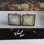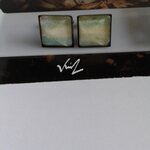 laiton bronze,cabochons carrés 20mm,verre loupe,aquarelle véritable originale ooak,d'isabelle krief artiste peintre,bijoux lacik uniques,jaune bleu vert,