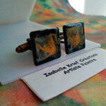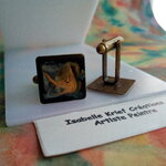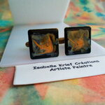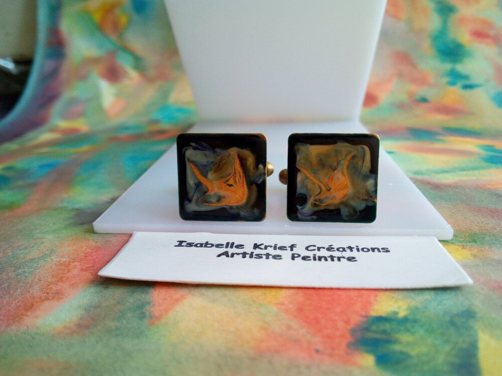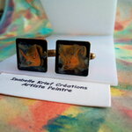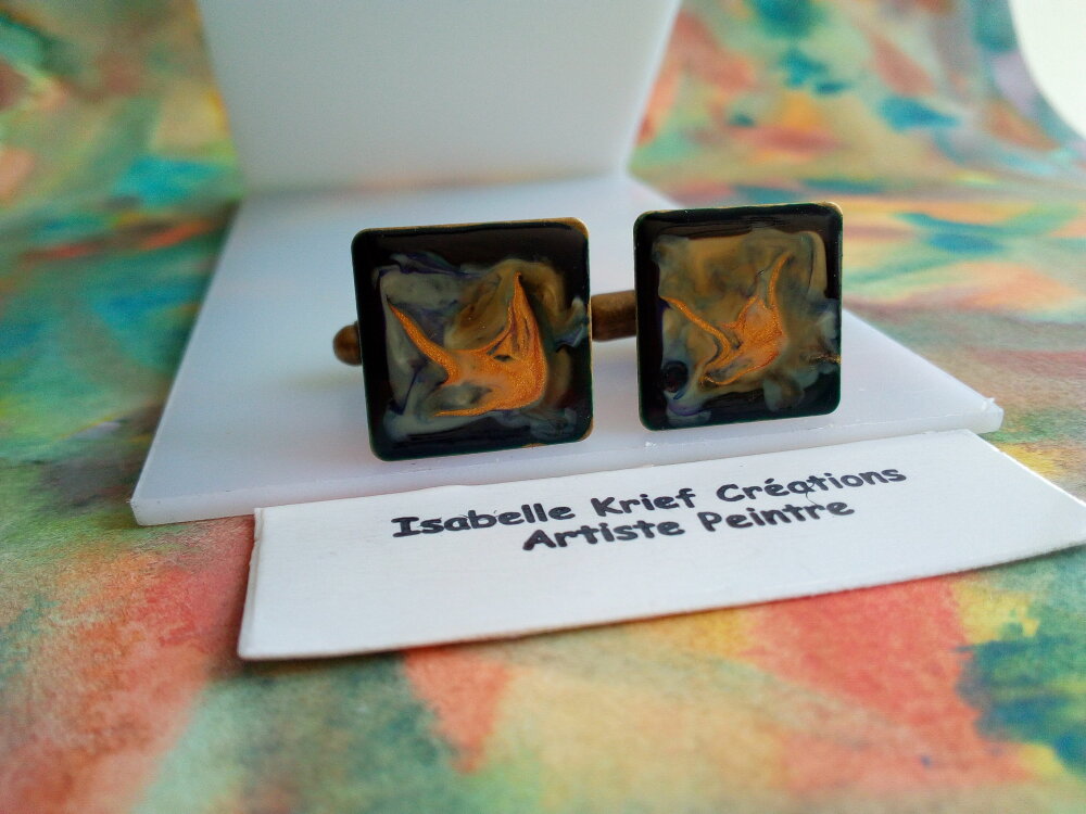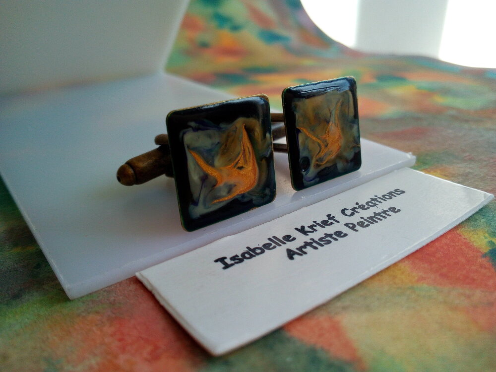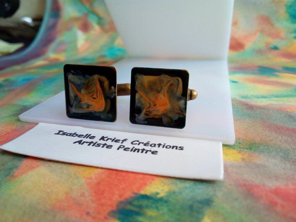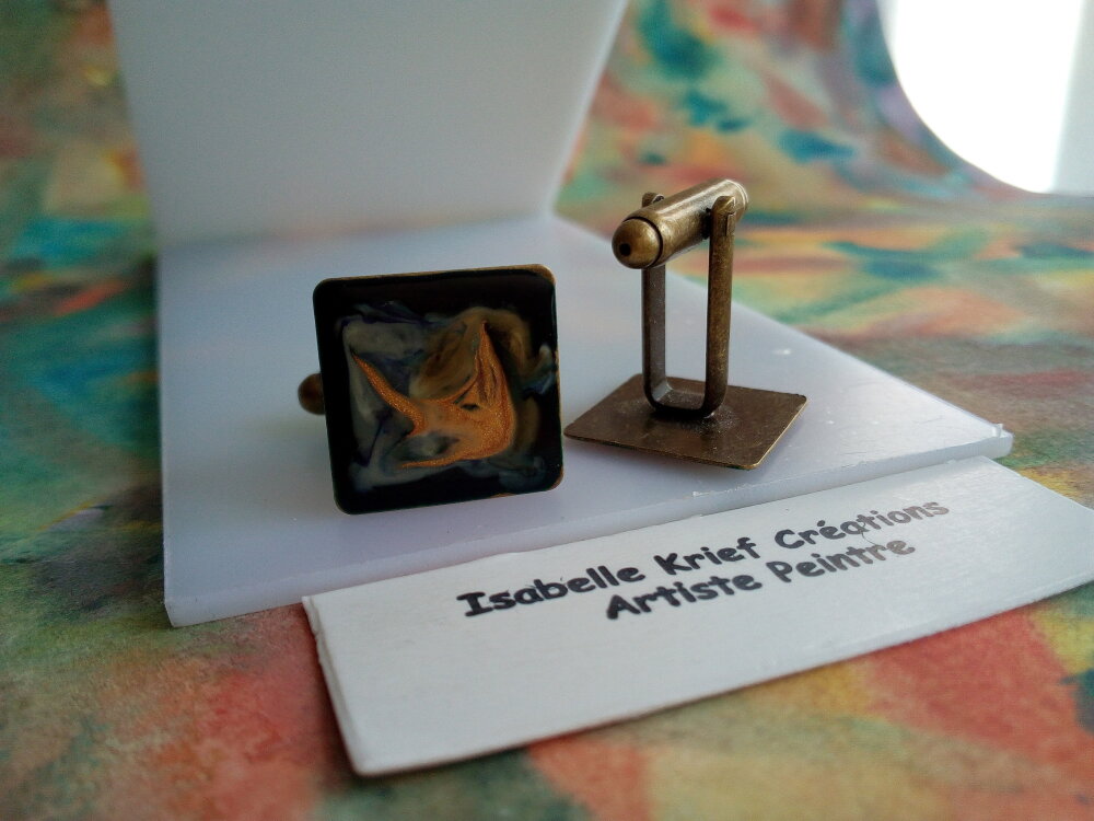 Boutons de manchette carré en laiton bronze peints par artiste isabelle Krief,fait mains en france,cadeau fete anniversaire noel,