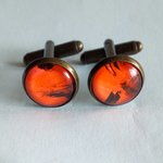 Boutons de manchette en laiton bronze avec cabochons en verre rond, peinture orange noir,accessoire de ceremonie