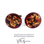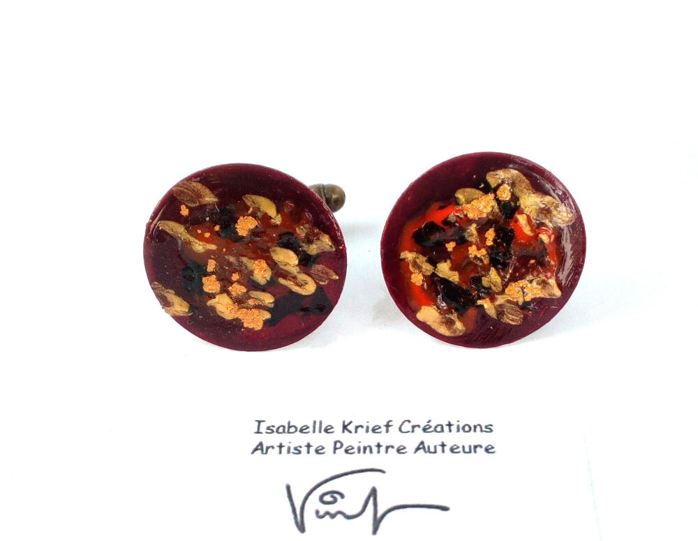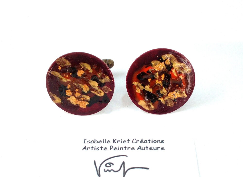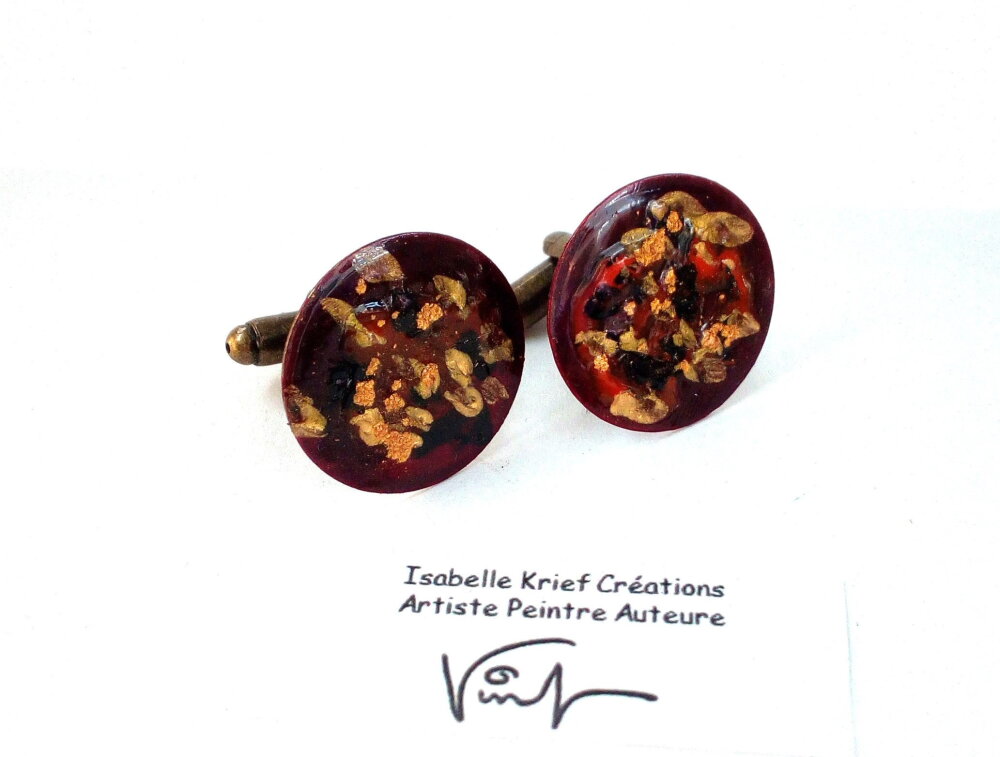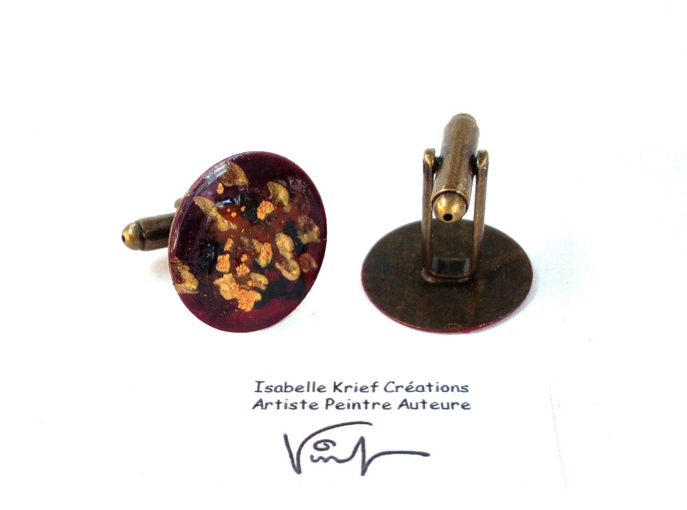 Boutons de manchette laiton,peinture acrylique fluide,poude d or,rouge bordeaux noir bronze,cadeau fete anniversaire noel,accessoire costume