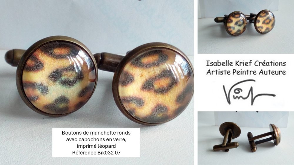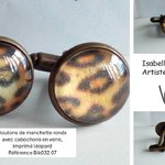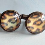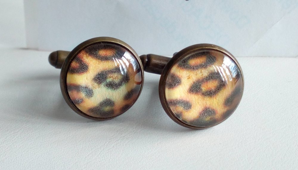 Boutons de manchettes,laiton avec cabochons en verre rond,imprime leopard,accessoire costume ceremonie,cadeau homme