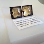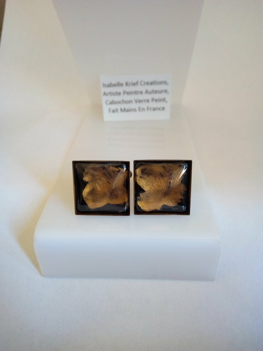 Boutons de manchettes laiton bronze avec cabochon carres en verre peint par artiste,fait mains en france,cadeau fete anniversaire noel