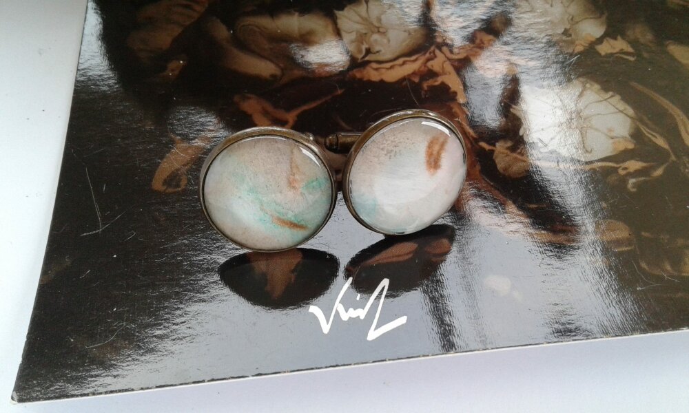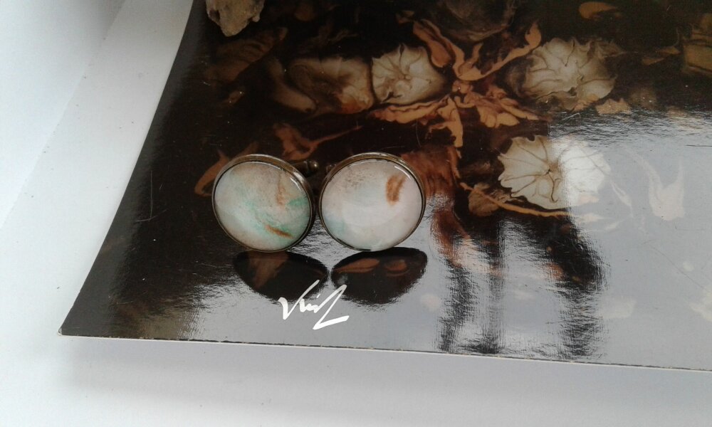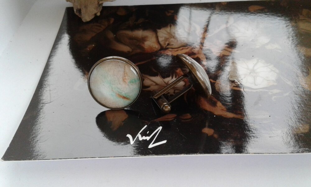 peint artiste française,boutons de manchette,laiton bronze,aquarelle authentique,fait mains en france,vert marron blanc,cadeau fete,bijou accessoire costume homme,bobo boheme gothique,edouardien art deco,art nouveau baroque,victorien,tendance fashion,punk contemporain,cadeau, fete st valentin retraite,