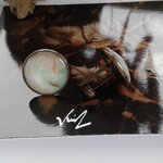le verre loupe donne de la profondeur,du relief à la peinture, pour coller le cabochon, j'utilise mon vernis de peintre, c'est une colle acrylique, sans acétone, elle n'abîme pas la peinture, ni le support,