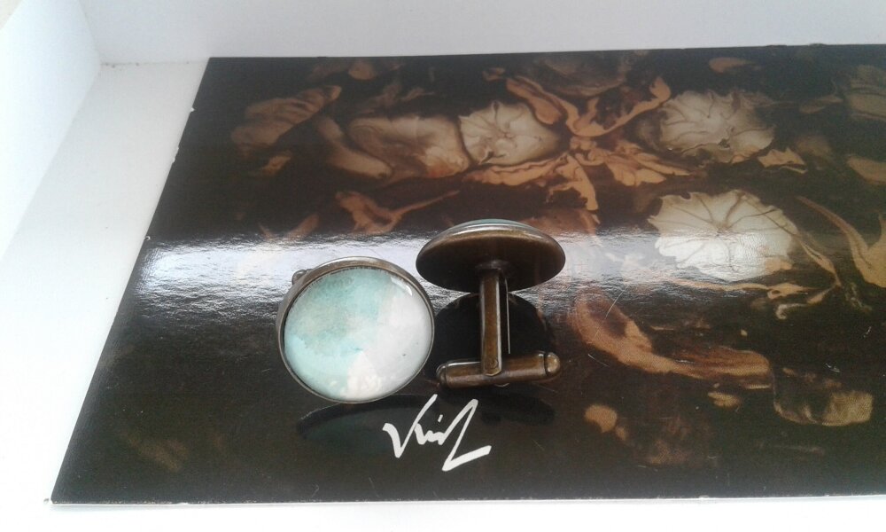 Boutons de manchette,aquarelle d isabelle krief,artiste peintre française,vert marron blanc,cadeau fete anniversaire,bijou accessoire costume cravate,bobo boho gothique,edouardien art deco,art nouveau baroque,victorien,tendance fashion,punk contemporain,retraite ceremonie,fait mains en france,
