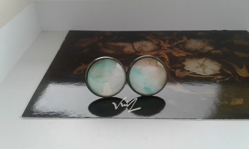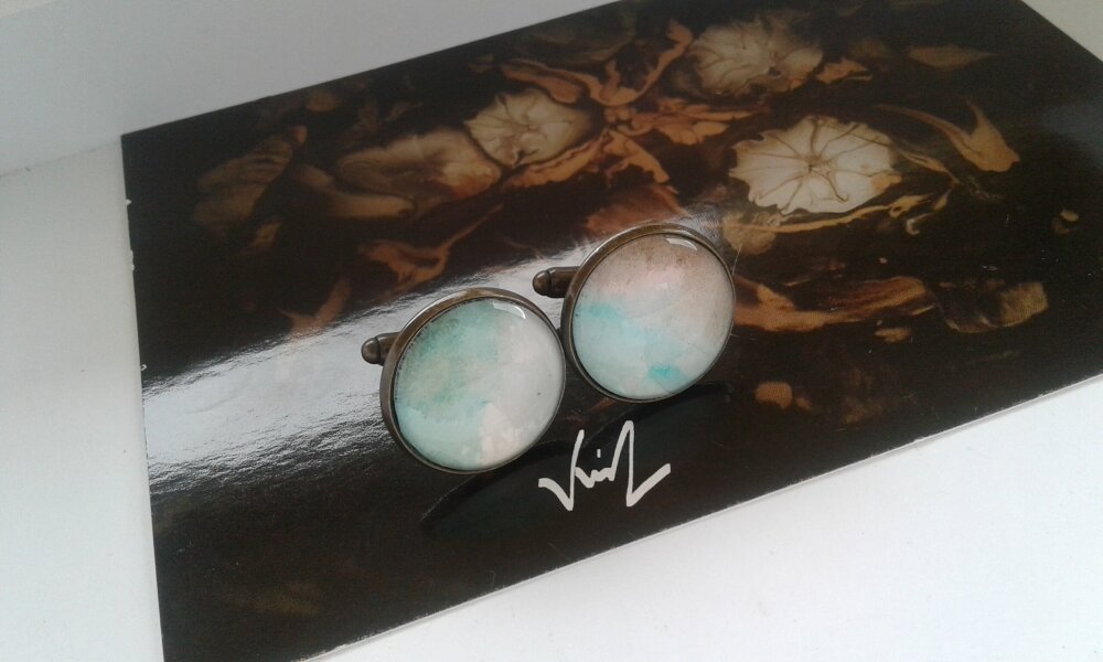 Boutons manchette,aquarelle artiste peintre française,vert marron blanc,cadeau fete anniversaire,accessoire bobo boho gothiqu