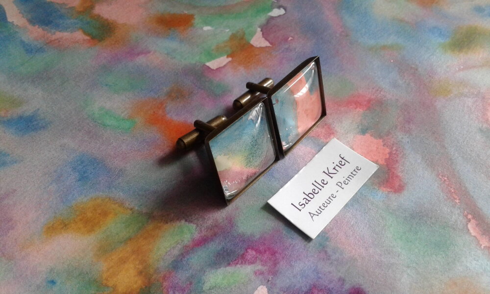 aquarelle originale ooak,artiste peintre française,boutons de manchette,carrés 20mm,rose bleu jaune vert,laiton bronze,bobo boho gothique,art deco art nouveau,baroque victorien,fashion punk edouardien,fantastique abstrait,art brut art moderne,cadeau fete anniversaire noel,fait mains en france,made in france,accessoire costume cravate,