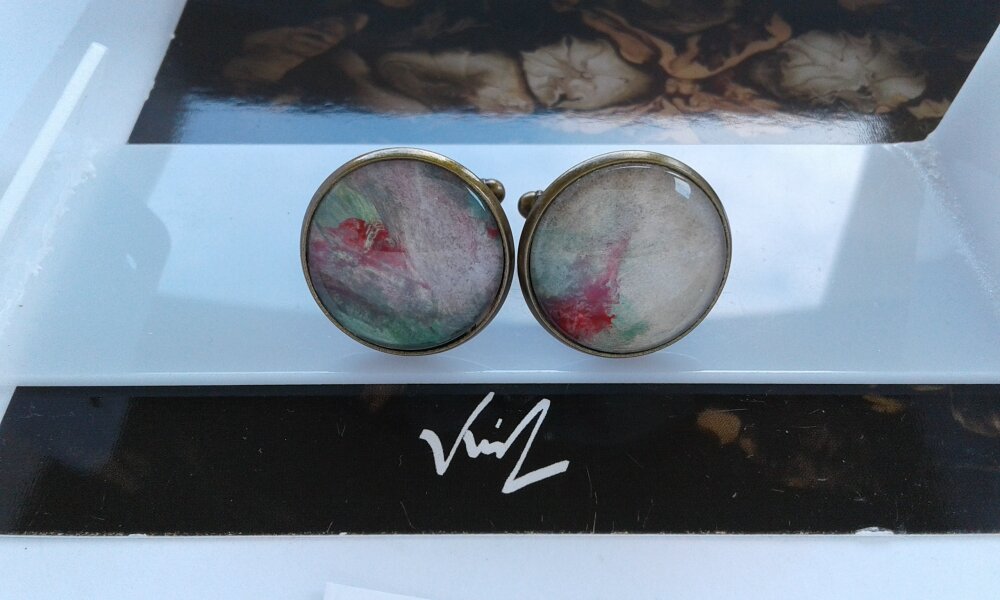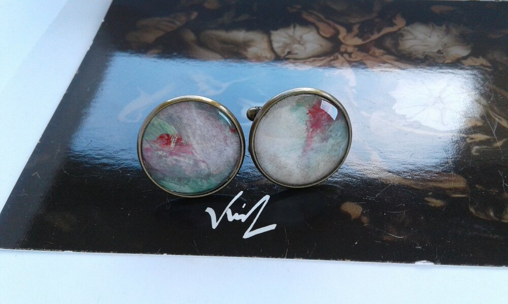 peint artiste française,paire boutons manchette,cabochons ronds 20mm,aquarelle vert rouge violet beige,bijou bobo boho,victorien gothique,fait en france,edouardien artdeco contemporain,