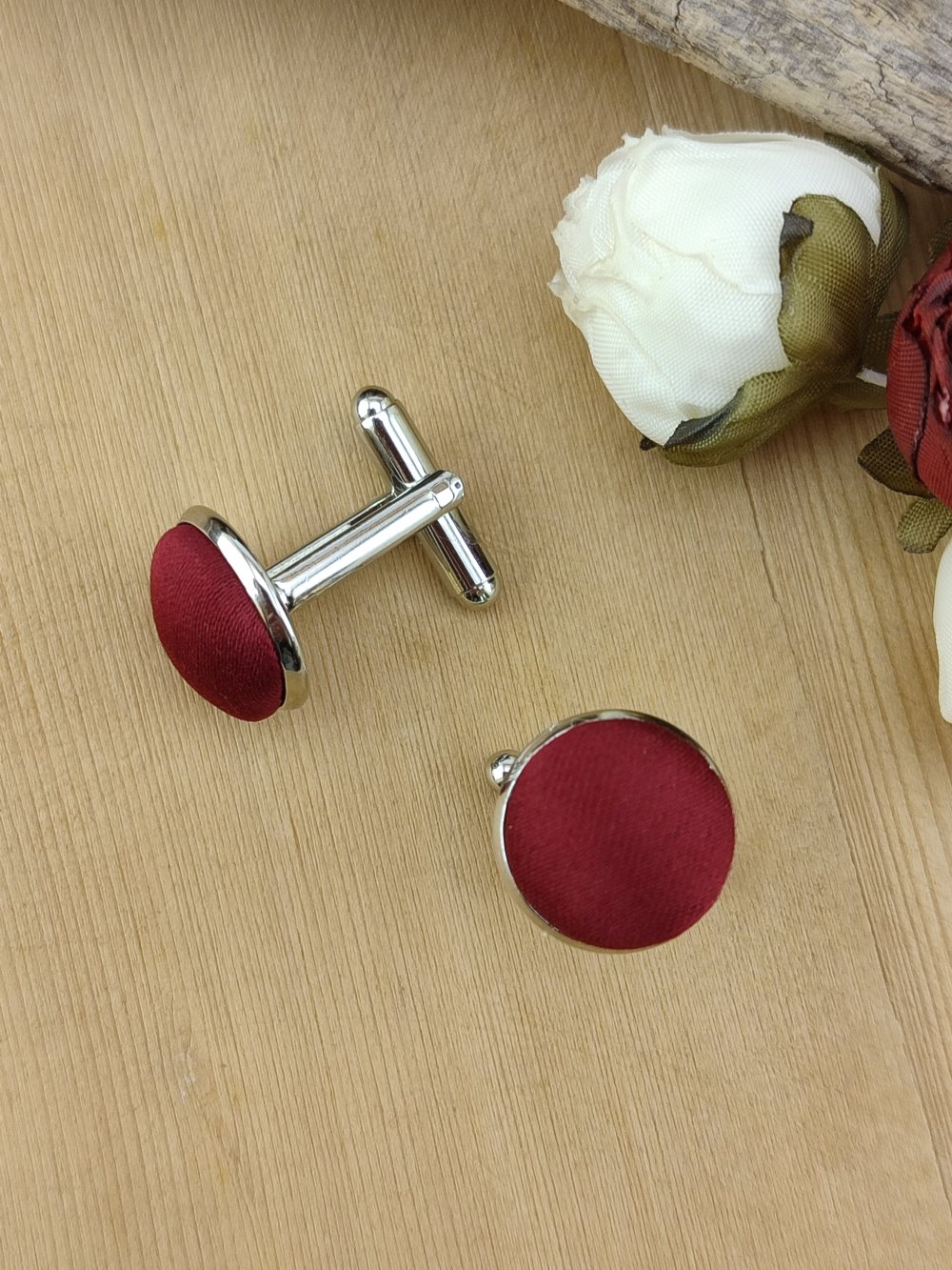 ➯ Les boutons de manchette (en satin Duchesse) :