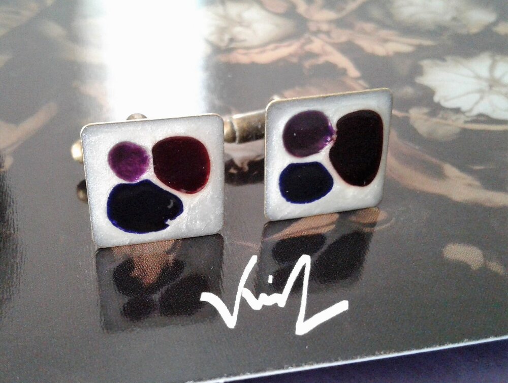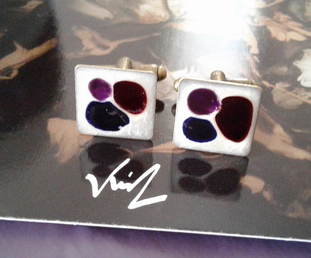 peint artiste française,boutons manchette carré,rouge violet blanc bleu,abstrait art modern,accessoire costume cravate,bobo boho gothique