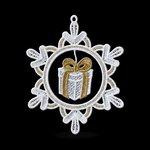 Ajoutez une touche d'originalité sur votre sapin de noël avec cette étoile des neiges blanche et dorée avec son petit cadeau central.
