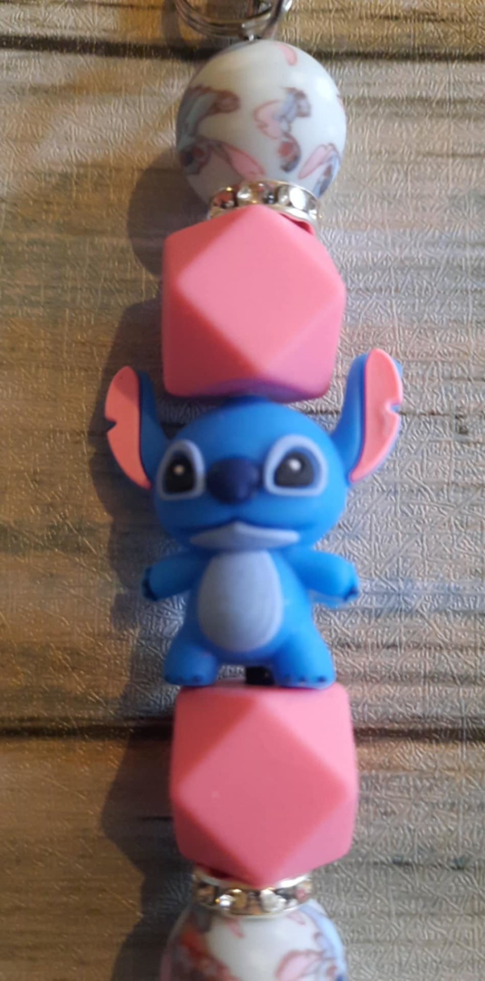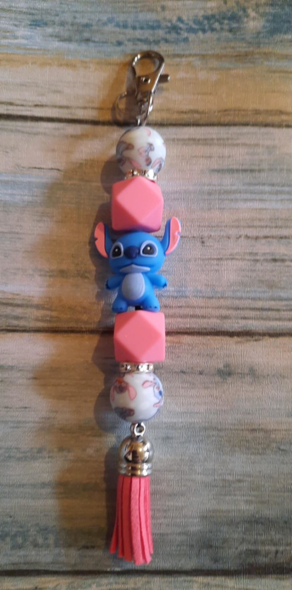 porte clé fait main en perles silicone avec petit personnage stitch et terminé par un joli pompon