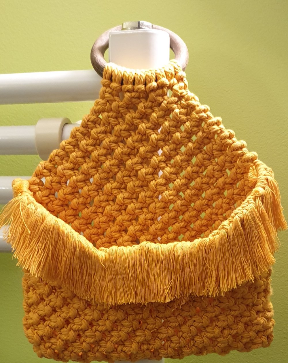 porte papier macramé couleur ocre à installer dans une entrée , un couloir..