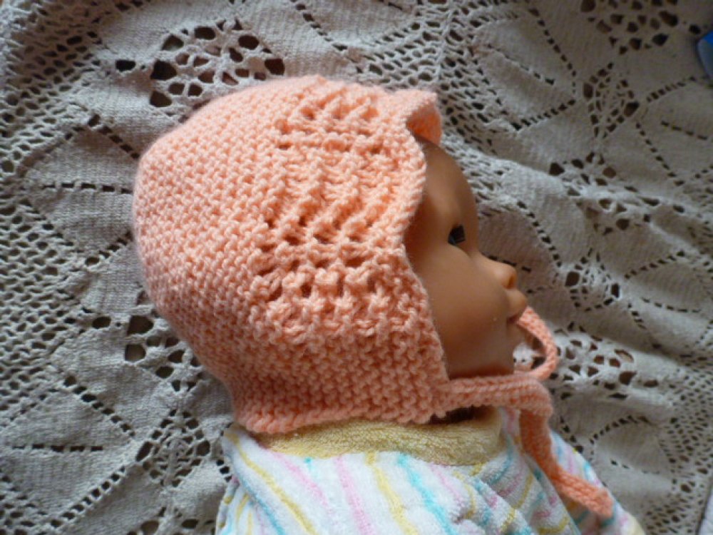 béguin 0/4 mois réalisé avec une laine layette Phildar douce ,