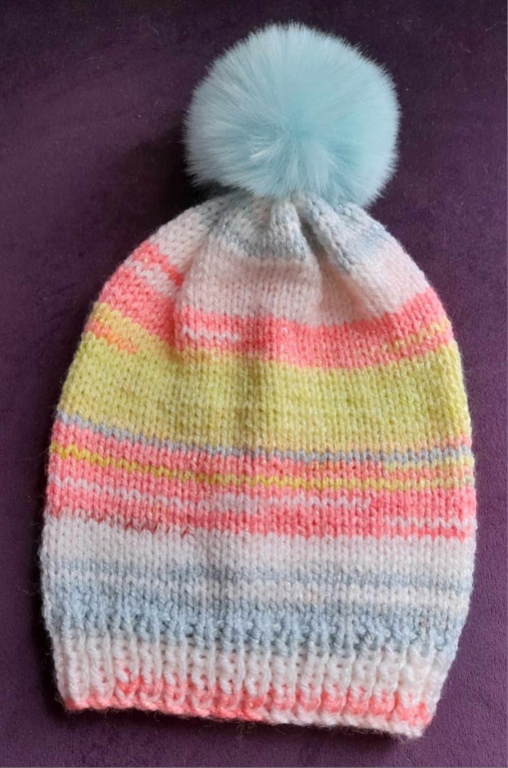 Coloris : rose, bleu, blanc avec pompon bleu ciel