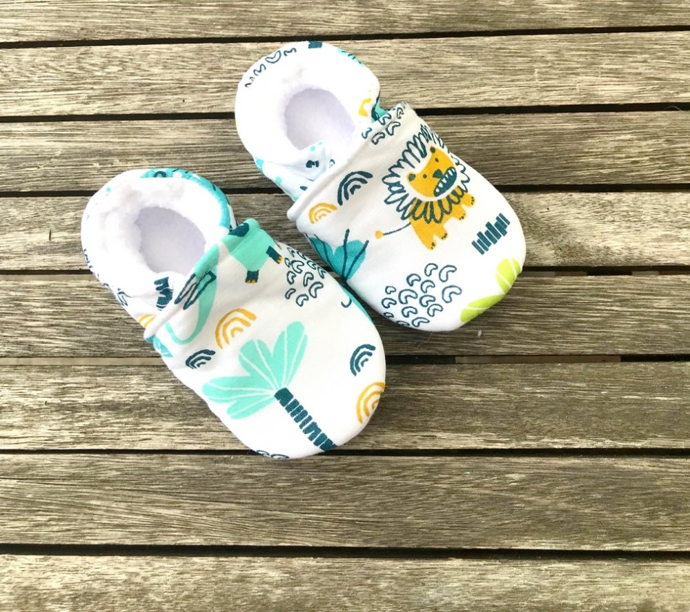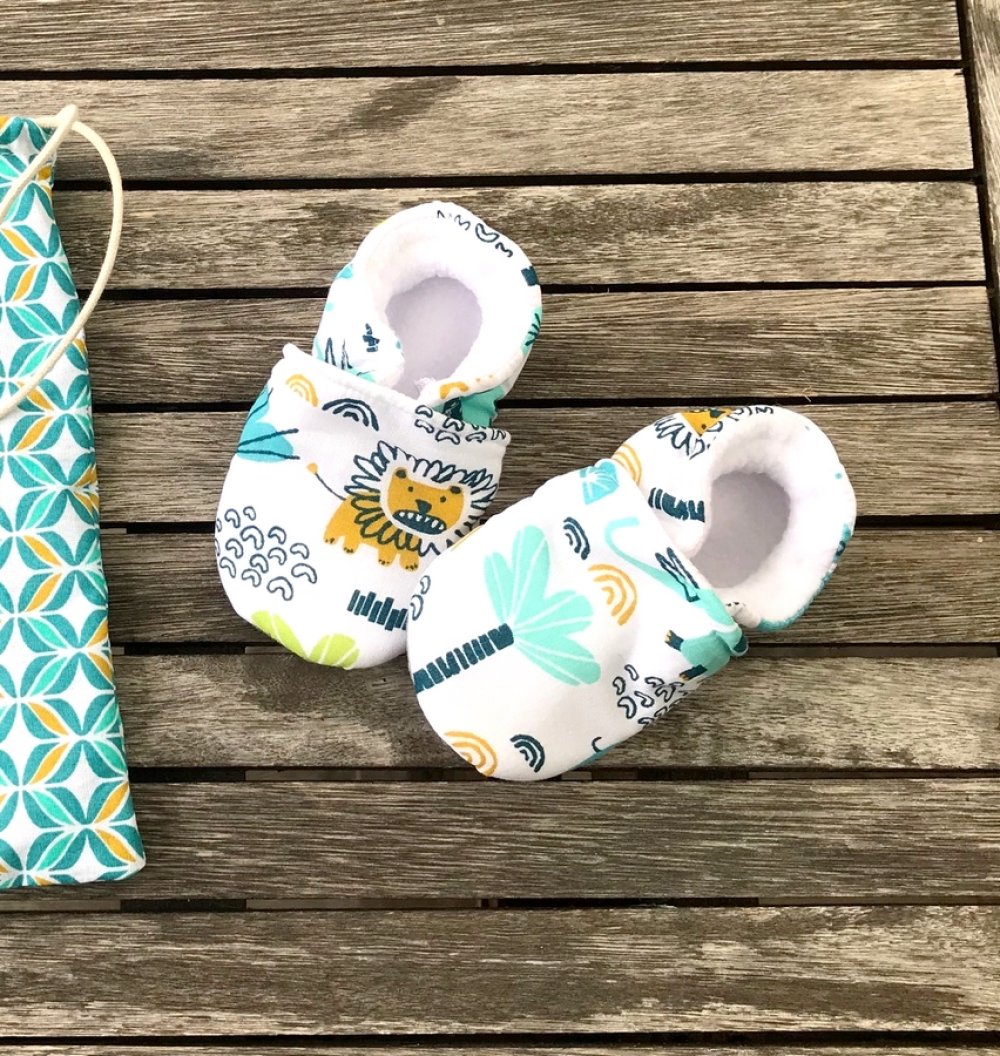 une paire de chaussons en coton "motifs animaux de la savane" et intérieur