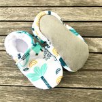 Chaussons souples bebe en coton et semelle antidérapante en suédine, motifs animaux savane doublés en polaire, chaussons de portage