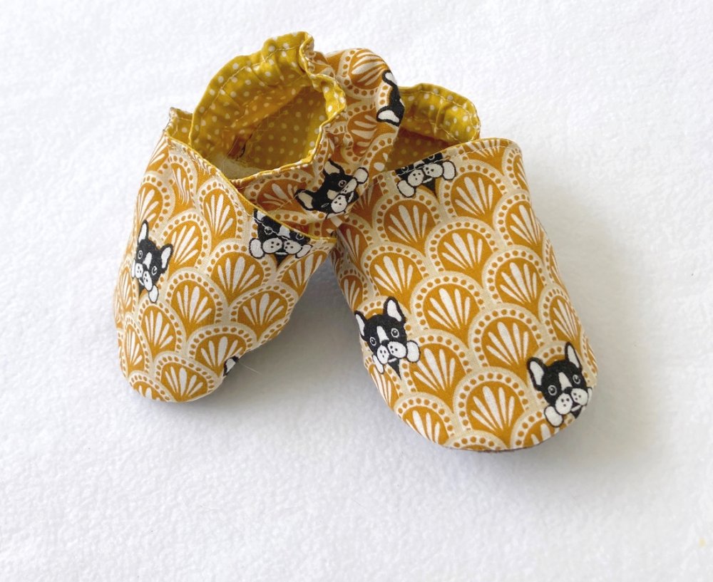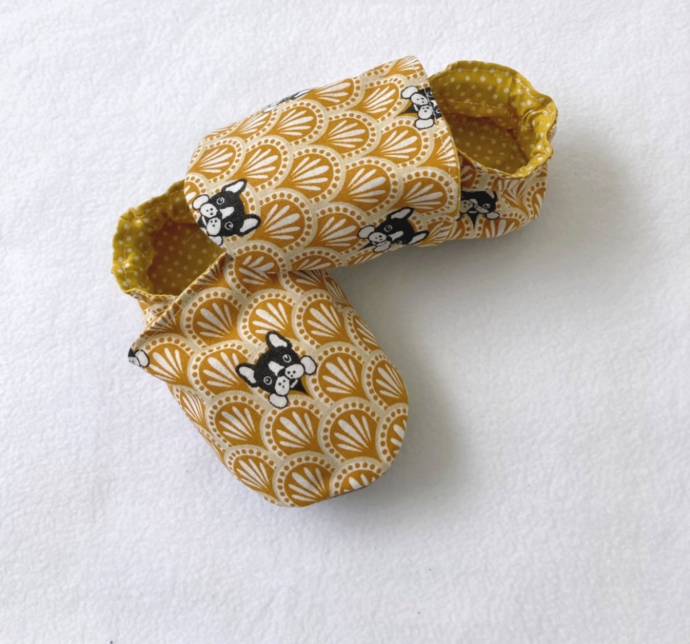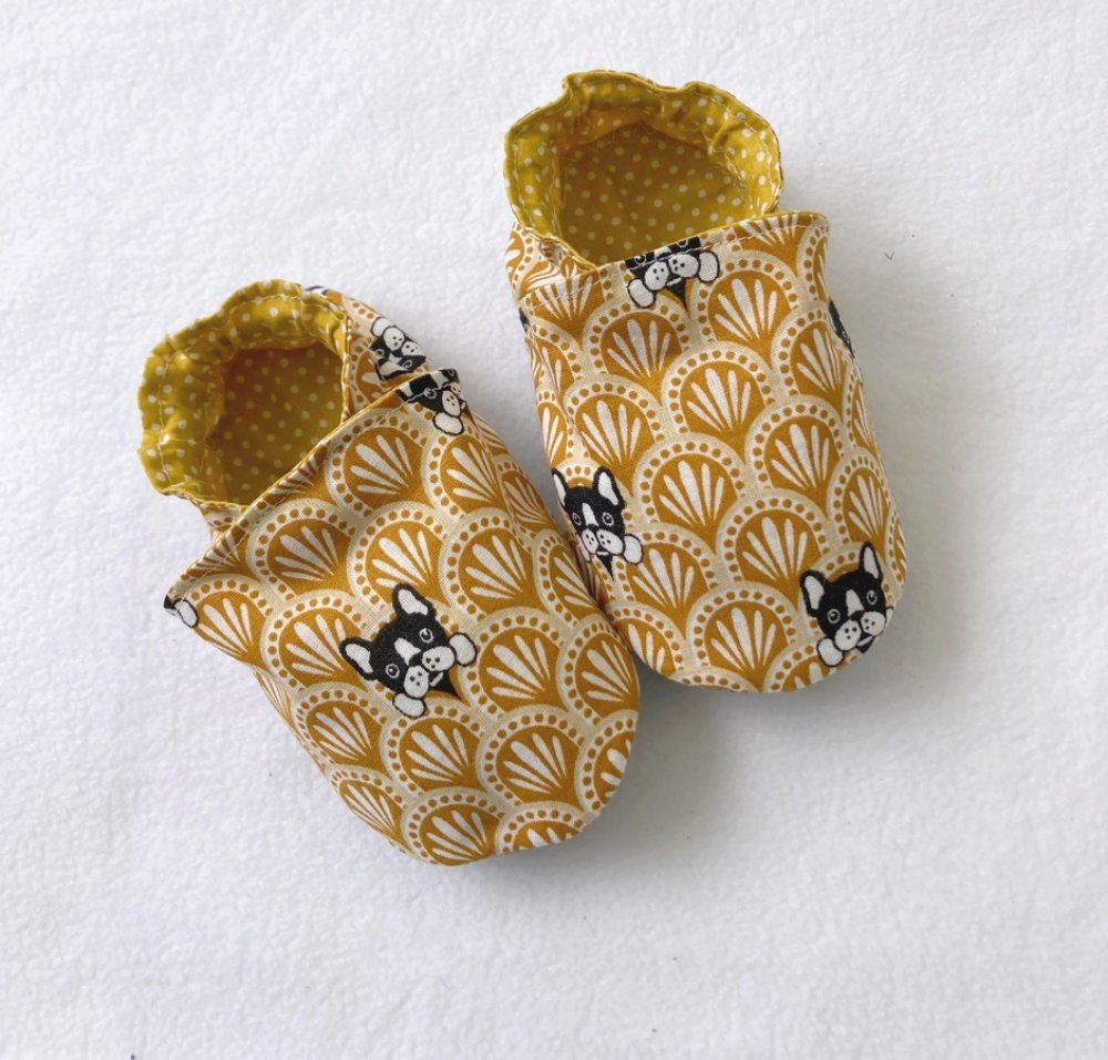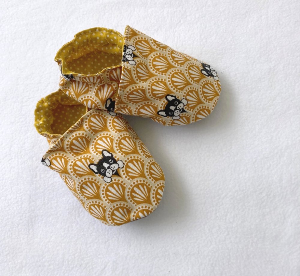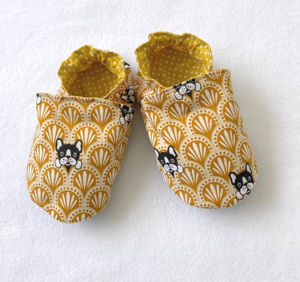 Chaussons souples animaux chien, coton et suédine pour la semelle , chaussons bébé, chaussons de marche, chaussons de portage