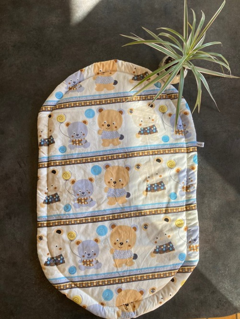 Le topponcino est un petit matelas préconisé en pédagogie Montessori, de la naissance à 3 mois et au-delà. On le conserve sous le bébé quand on le porte, on l’allaite. Il permet de coucher l’enfant ou de le déplacer sans le réveiller tout en conservant sa chaleur et son odeur.