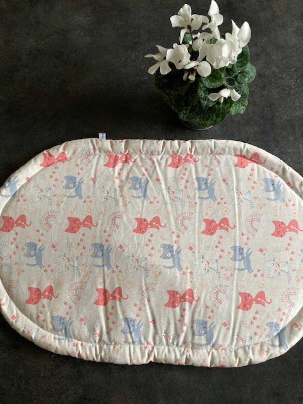 Le topponcino est un petit matelas préconisé en pédagogie Montessori, de la naissance à 3 mois et au-delà. On le conserve sous le bébé quand on le porte, on l’allaite. Il permet de coucher l’enfant ou de le déplacer sans le réveiller tout en conservant sa chaleur et son odeur.