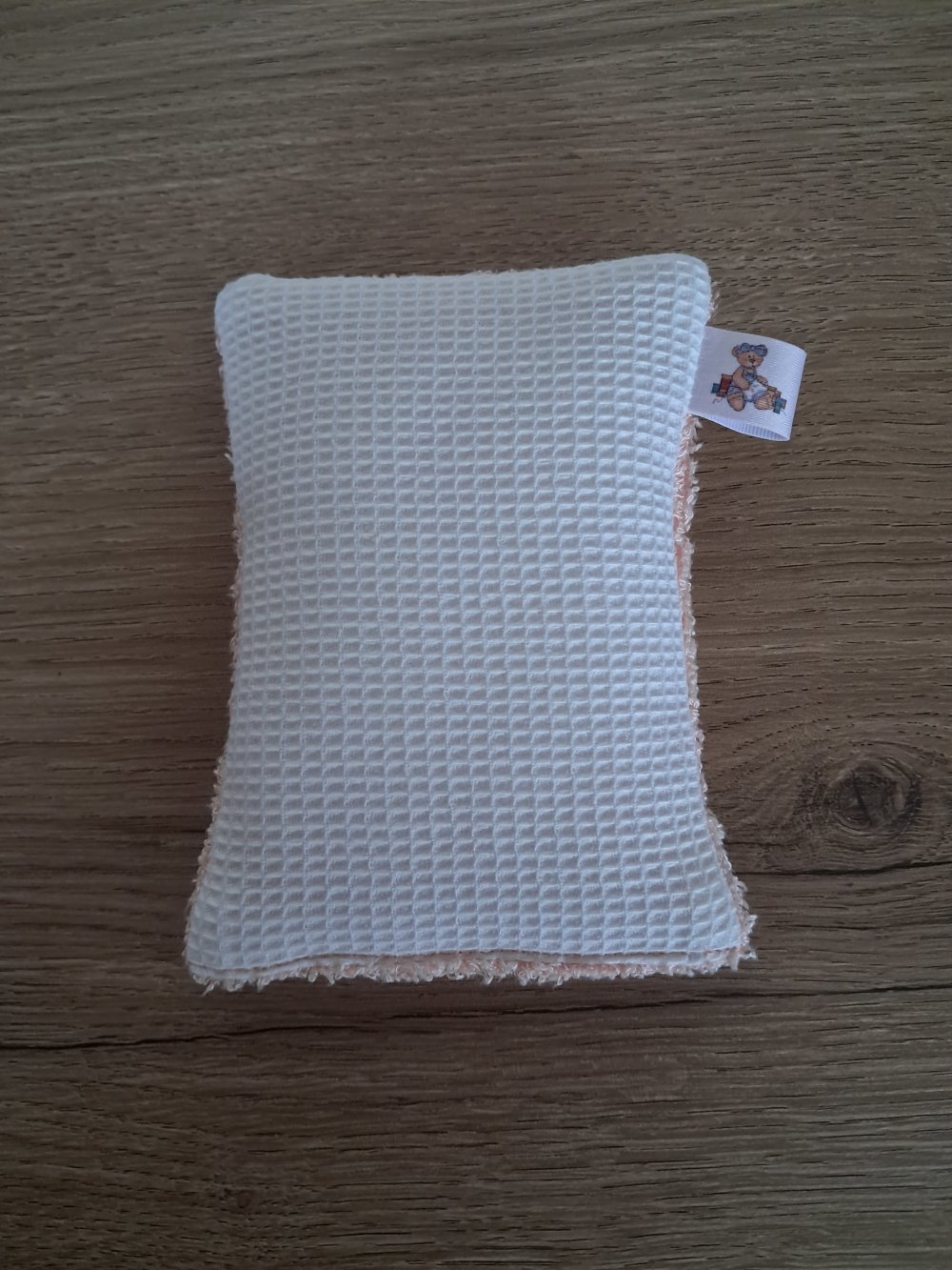 - d'une face en Tissu Micro éponge de bambou absorbant de couleur Pêche.