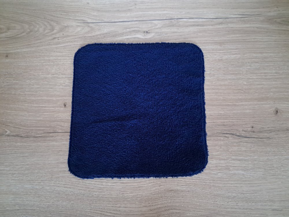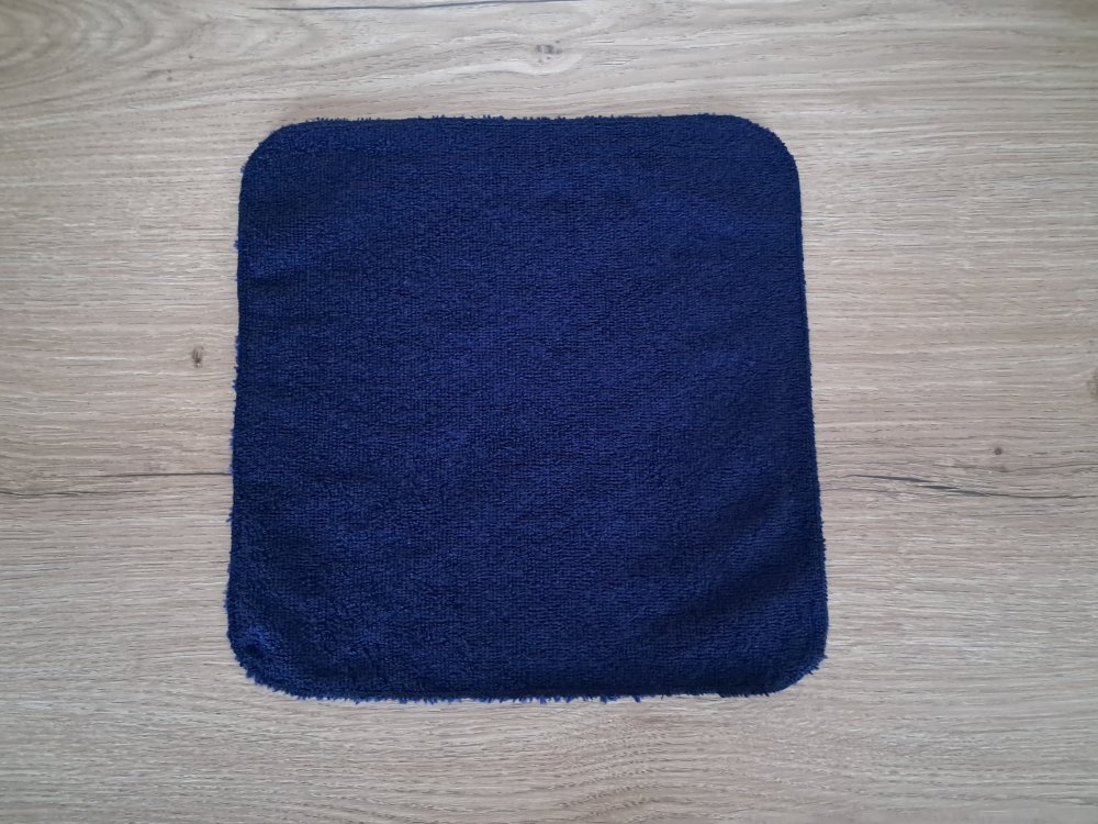 Carré de couleur "Bleu Marine", aux bords arrondis qui mesure 25 cm environ, dont les bords ont été soigneusement fini à la surjeteuse et peuvent présenter un visuel imparfait, ceci étant volontaire de ma part.