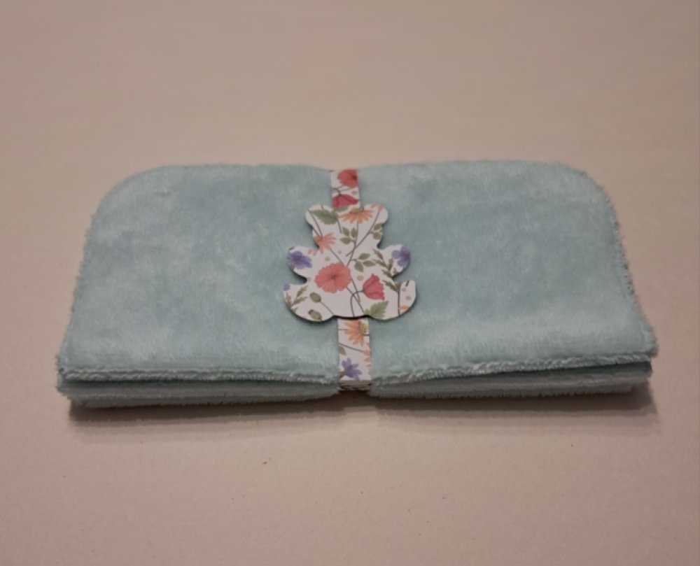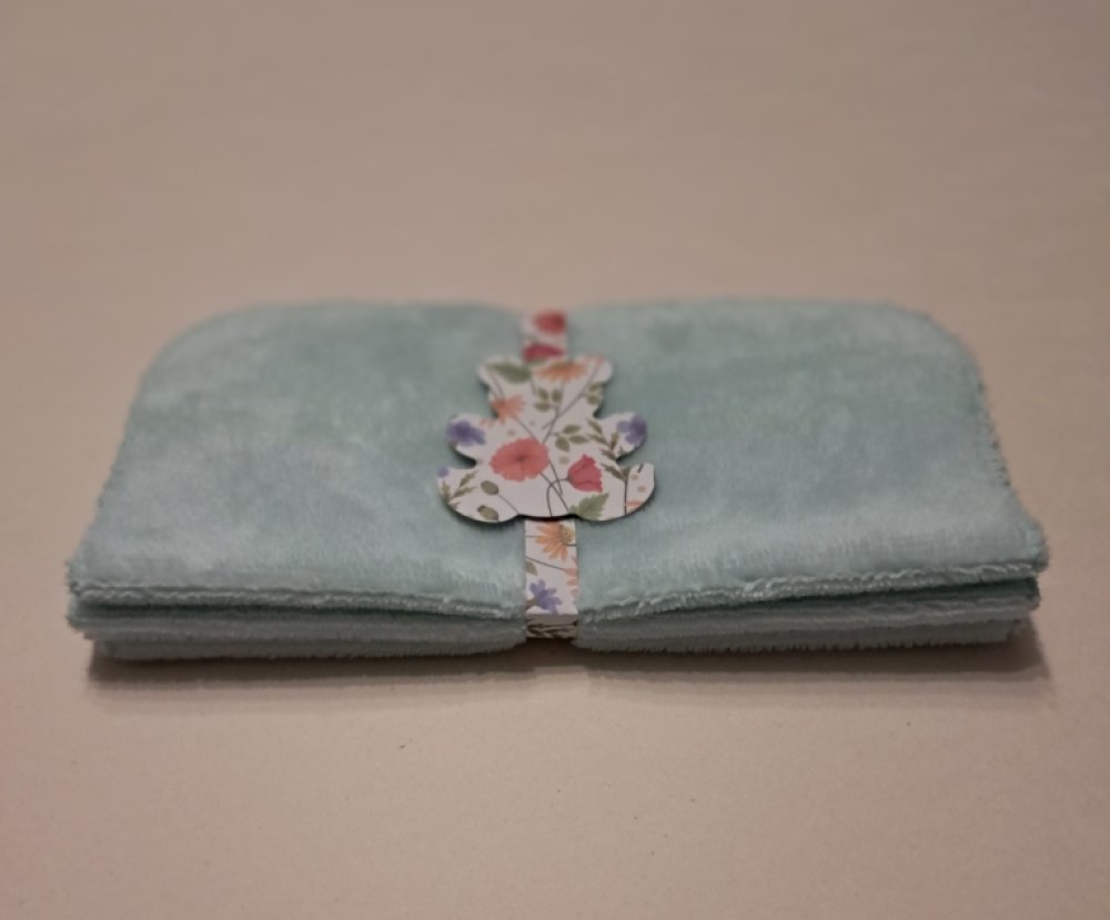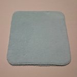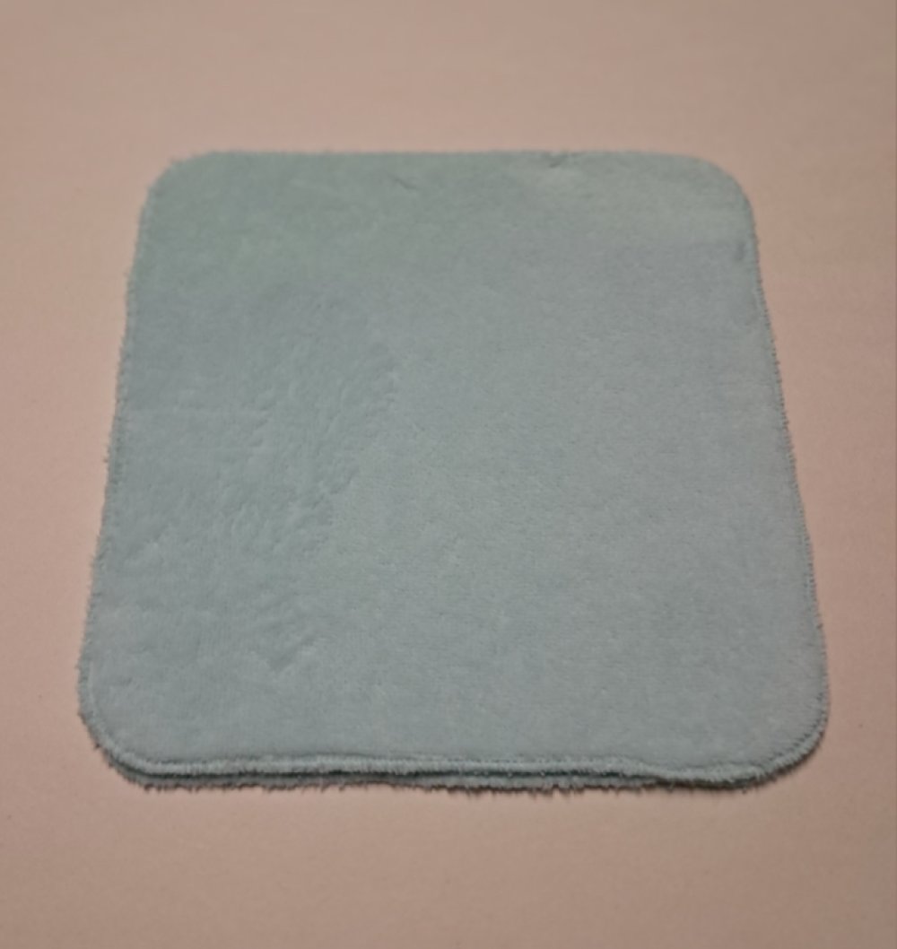 Carré de couleur "Vert d'Eau", aux bords arrondis qui mesure 25 cm environ, dont les bords ont été soigneusement fini à la surjeteuse et peuvent présenter un visuel imparfait, ceci étant volontaire de ma part.