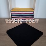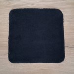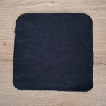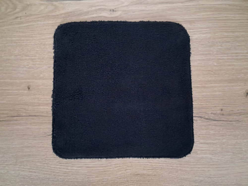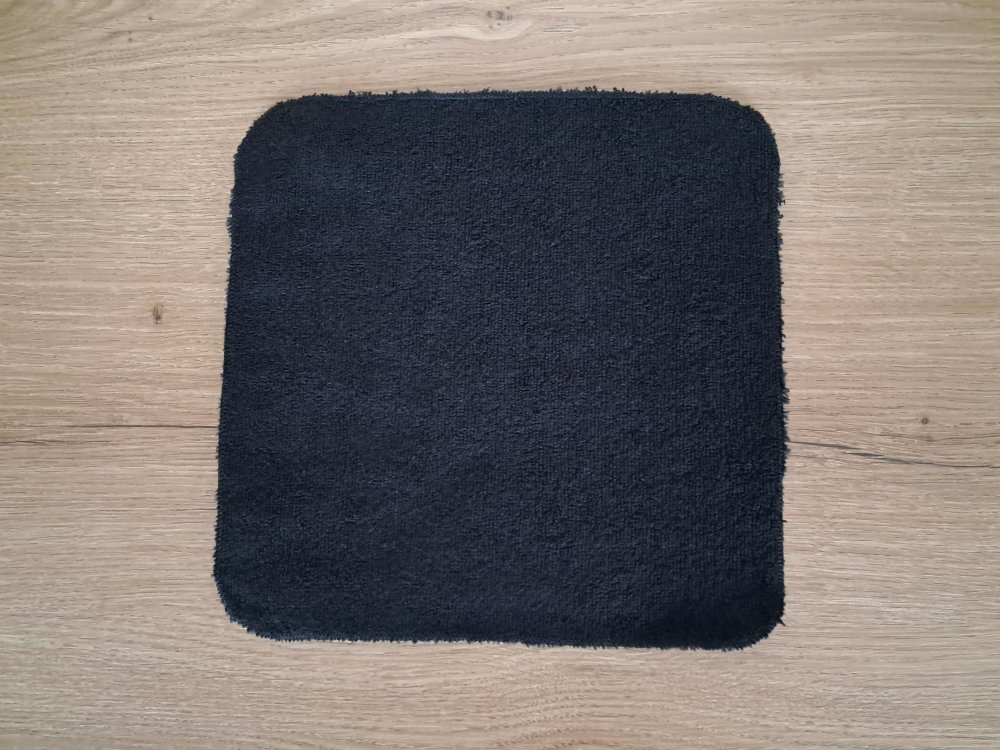 Carré de couleur "Noir", aux bords arrondis qui mesure 25 cm environ, dont les bords ont été soigneusement fini à la surjeteuse et peuvent présenter un visuel imparfait, ceci étant volontaire de ma part.