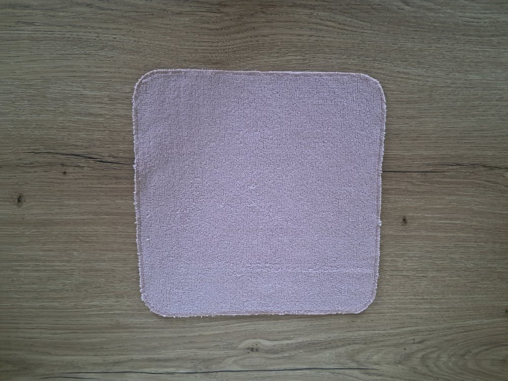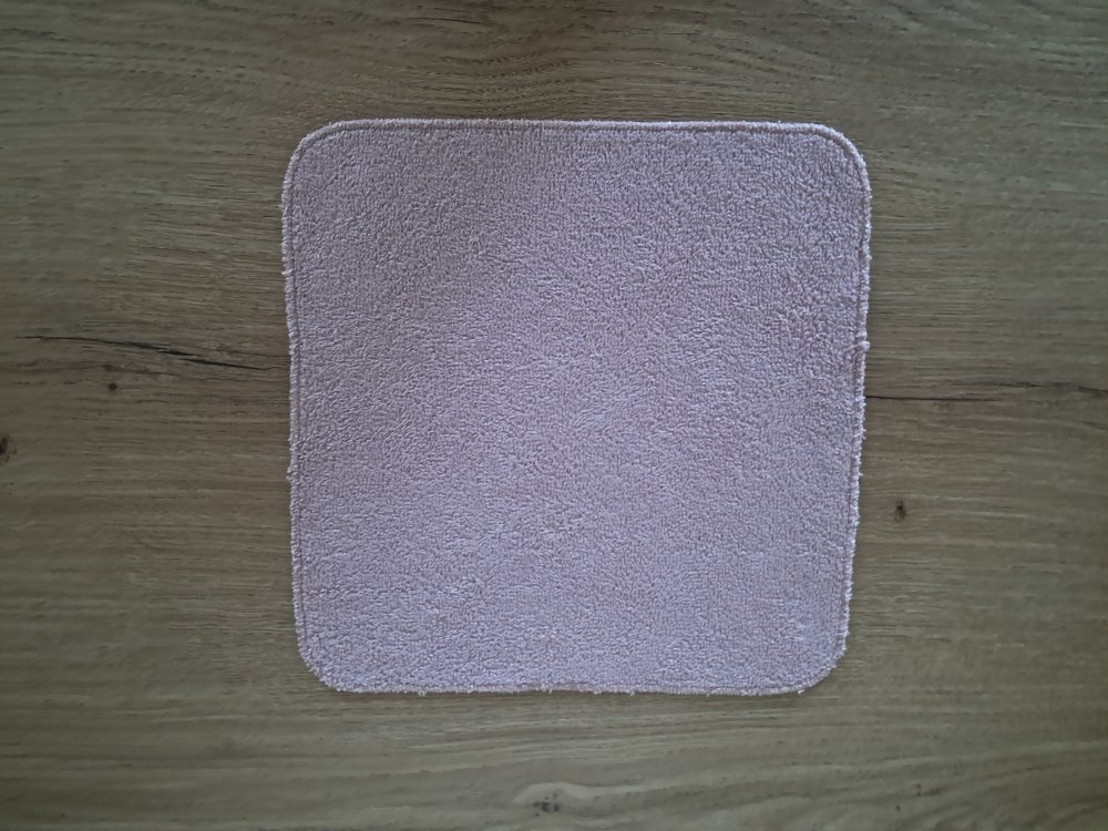 Carré de couleur "Vieux Rose", aux bords arrondis qui mesure 25 cm environ, dont les bords ont été soigneusement fini à la surjeteuse et peuvent présenter un visuel imparfait, ceci étant volontaire de ma part.
