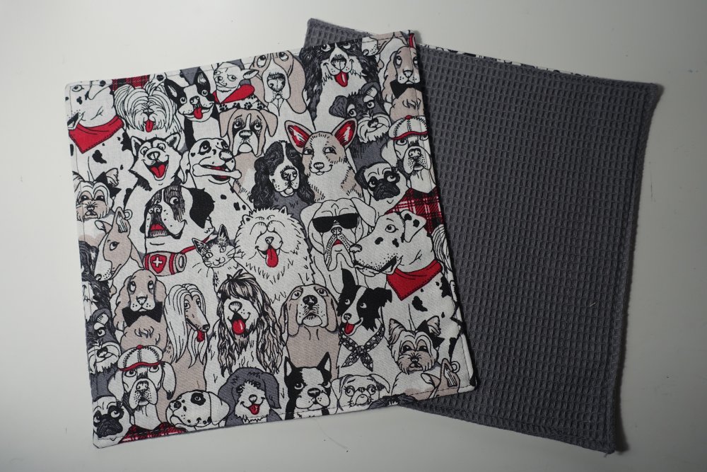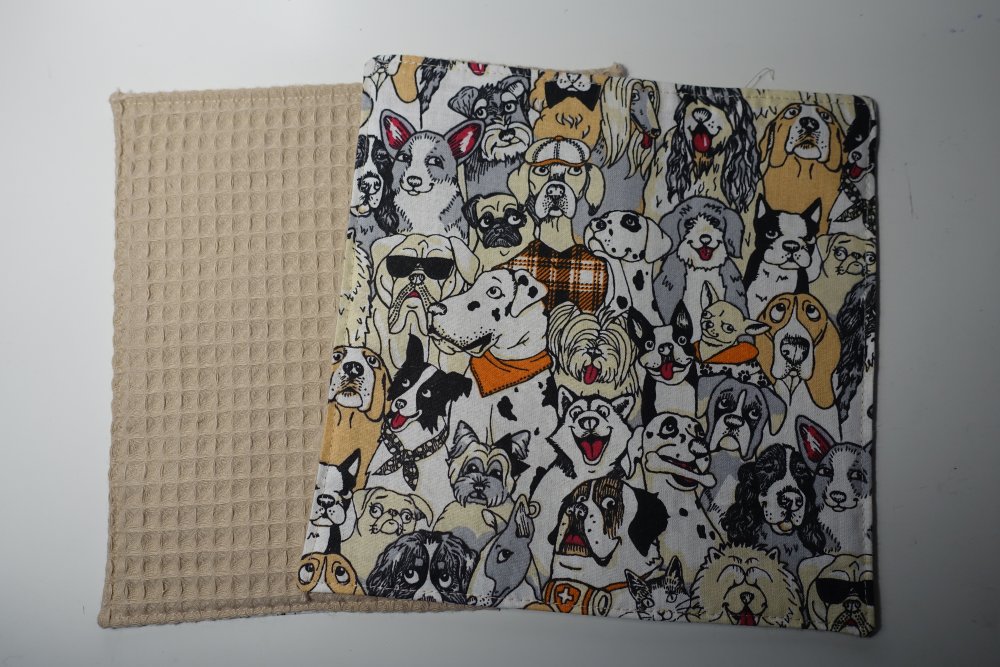 Pour changer des chats, les motifs sont des chiens. Mais cherchez bien, le chat n'est jamais très loin.