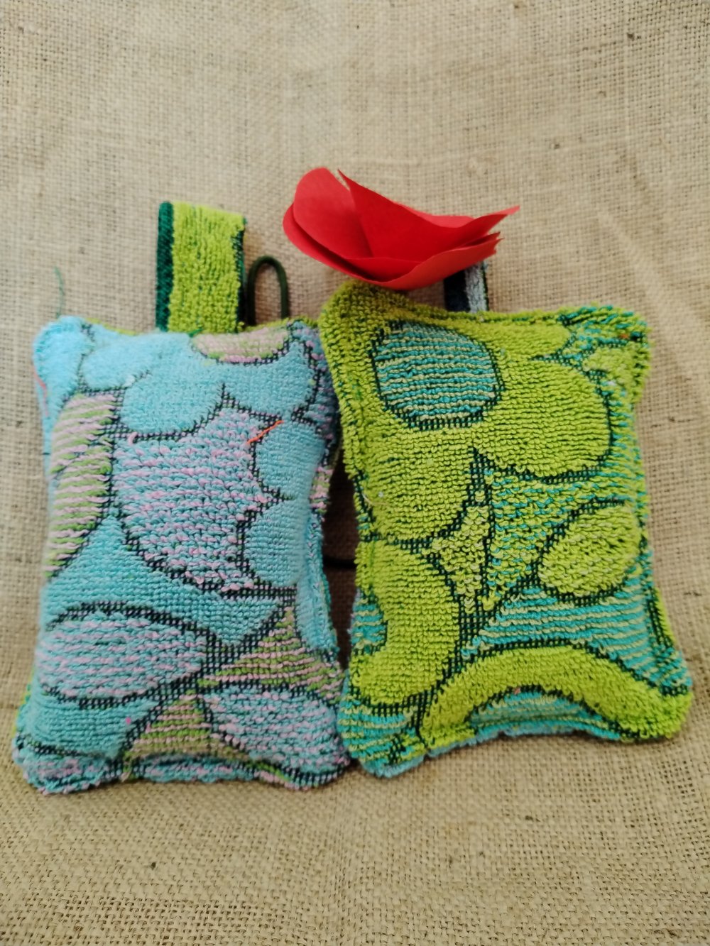 Eponges lavables et durables, pour nettoyer autrement avec conscience et couleur.