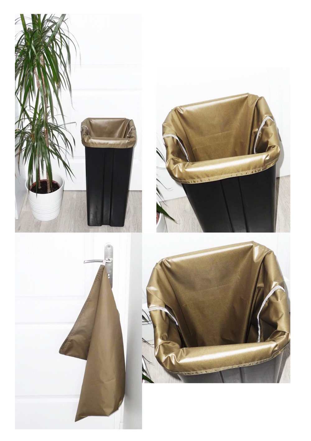 Fini le sac poubelle à usage unique. Faisons place au lavable et réutilisable. Conçu pour les poubelles de 30L. Pratique pour les déchets solides de la cuisine, pour le recyclage (papiers,...), pour la salle de bains, pour le linge, pour les couches lavables, au bureau, ...