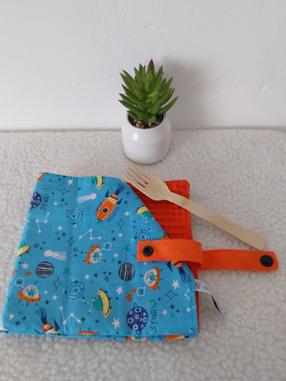 Elles remplacent gaiement les serviettes en papier, pour les repas au bureau, chez la nounou, à la cantine ou pour un pique-nique.... Se referme par un lien à pression.
