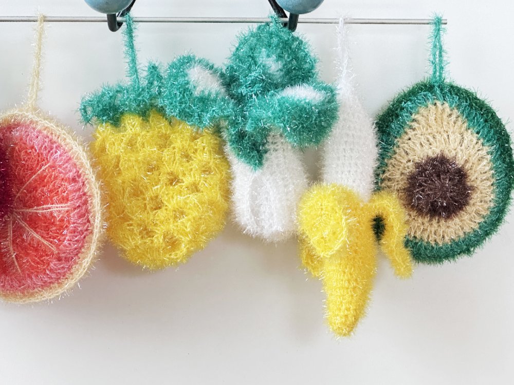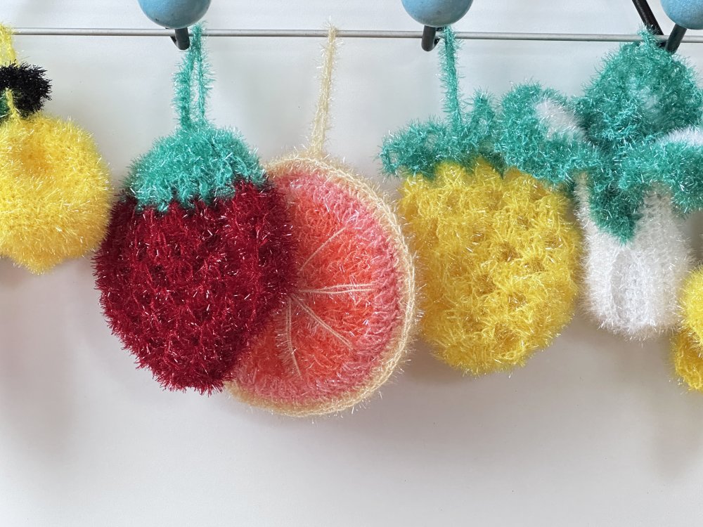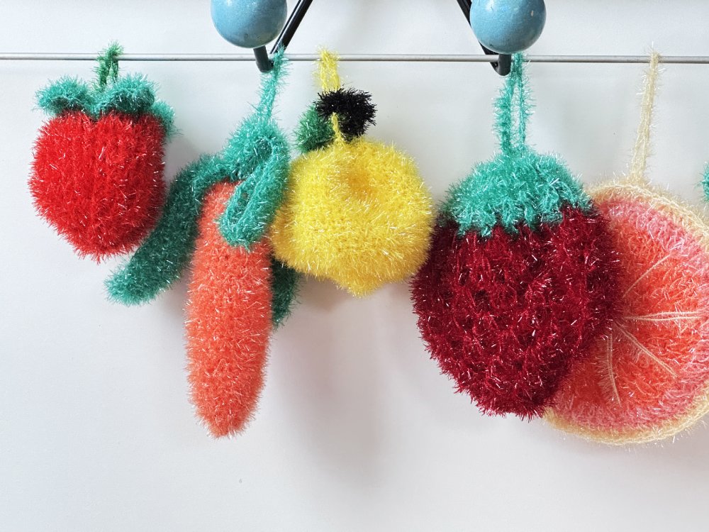 Tawashi fruits, éponge écologique, zéro déchet, accessoires de cuisine responsables, idée cadeau pour la maison