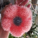 Tawashi fleur de douche ou de vaisselle lavable et durable "saumon/gris "au crochet Fait Main
