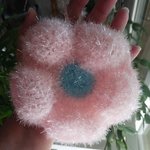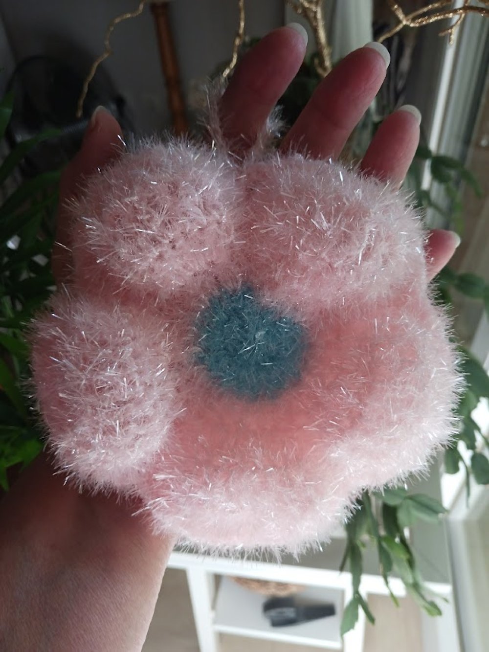 Tawashi fleur de douche ou de vaisselle lavable et durable "rose/bleu "au crochet Fait Main