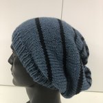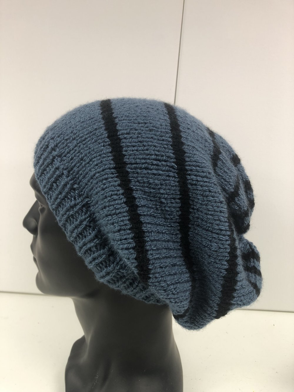 Bonnet Homme Laine Tricoté Main Réf 6064 Qualité Acrylique Couleur Bleu Rayures Noir Taille Unique Modèle Unique