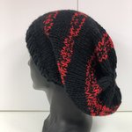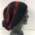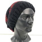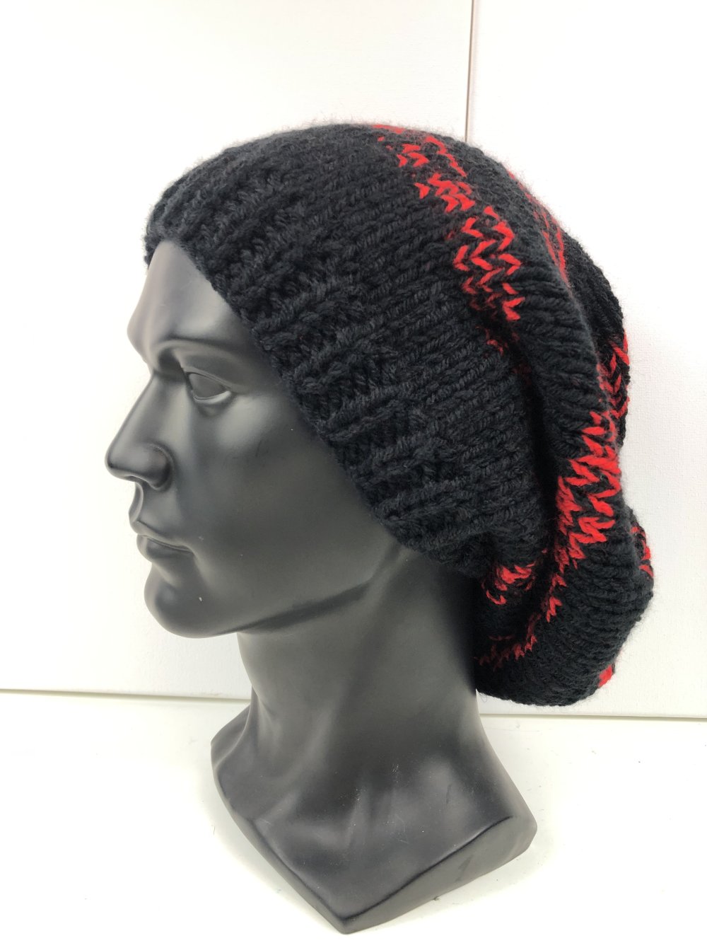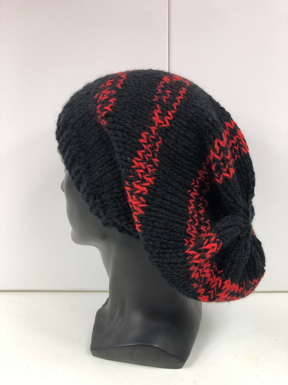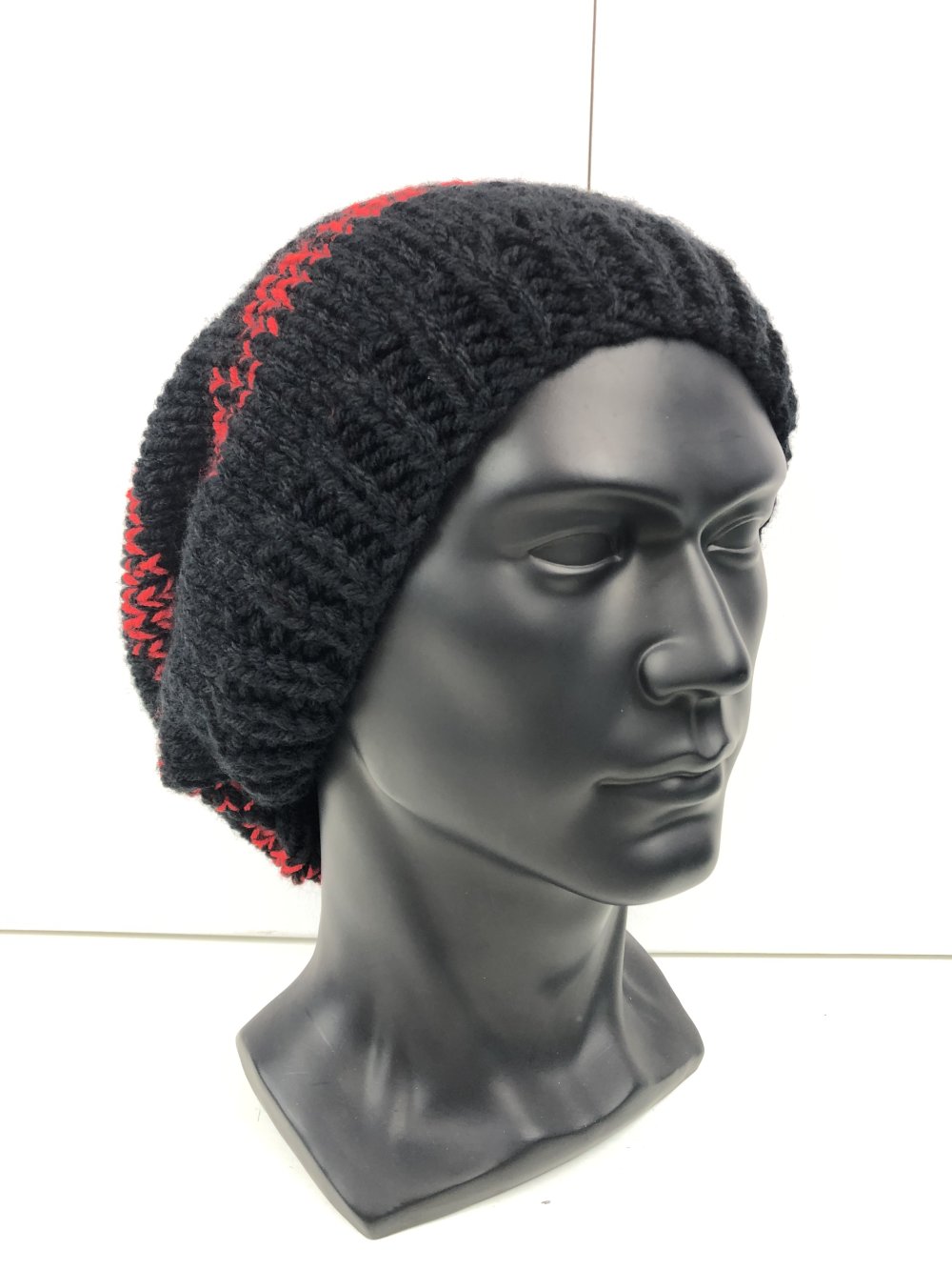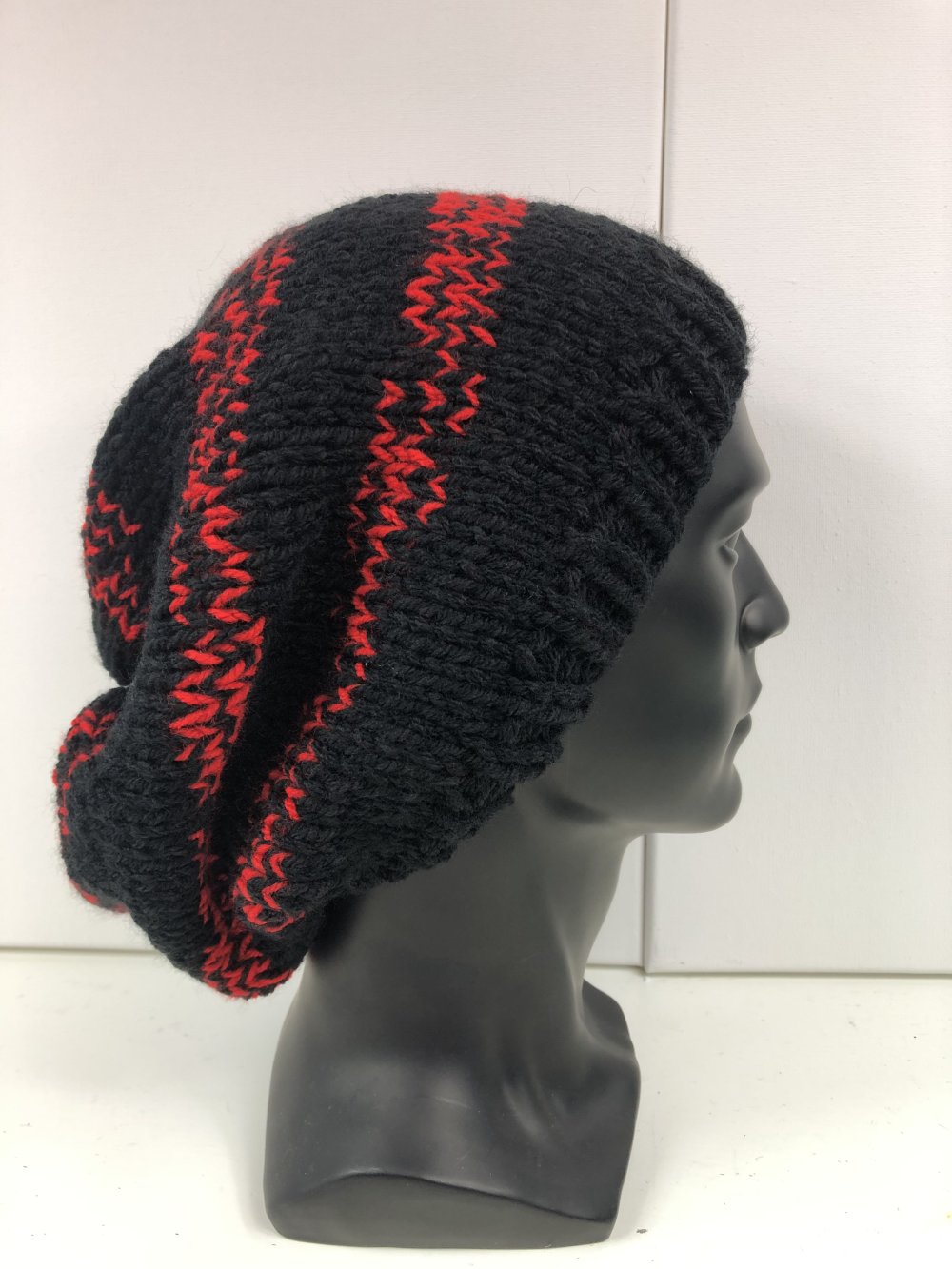 Bonnet Laine Homme Tricoté Main Réf 6253 Qualité Acrylique Couleur Noir Rayures Rouge Taille Unique Modèle Unique