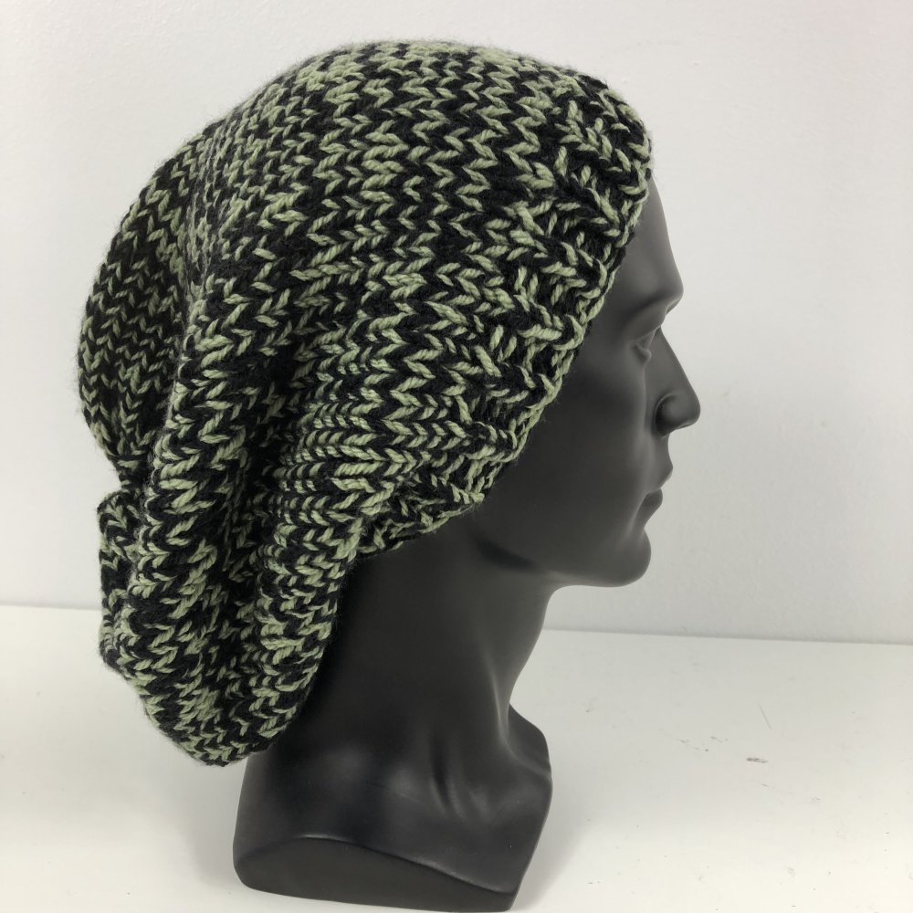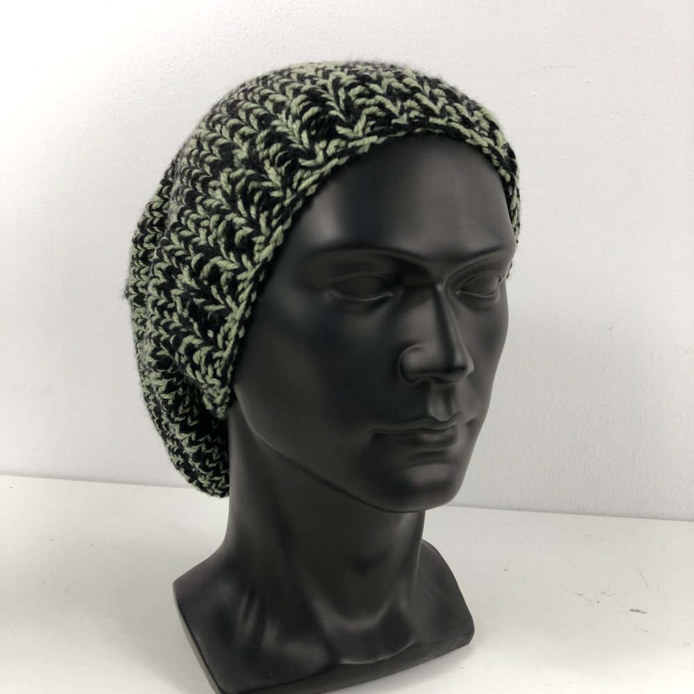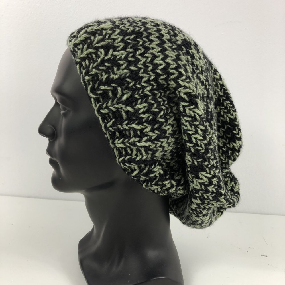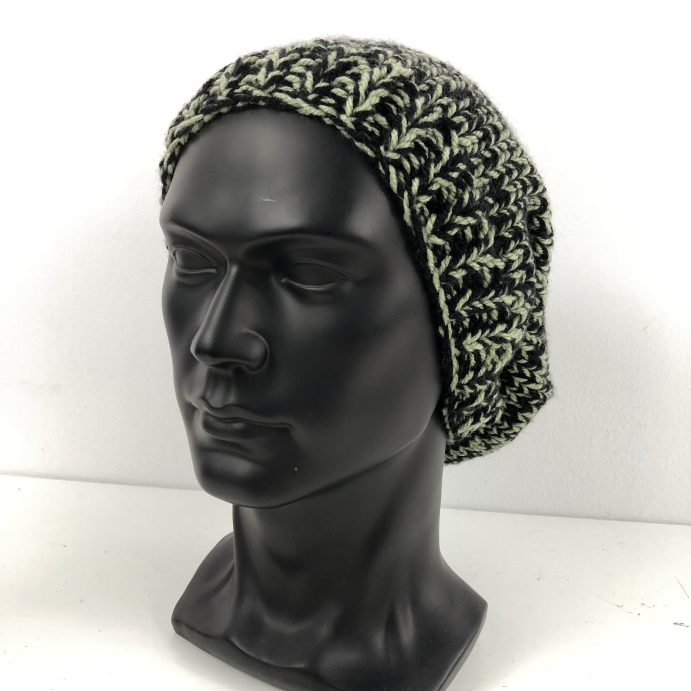 Bonnet Homme Laine Tricoté Main Réf 7674 Qualité Acrylique Couleur Chiné Kaki/Noir Taille Unique Modèle Unique