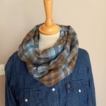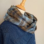 Snood pour homme ou mixte, réalisé dans un tissu écossais en flanelle, 65% polyester et 35% coton, tout doux, bien chaud et souple, de couleur marron et bleu grisé , faire 2 tours autour du cou.