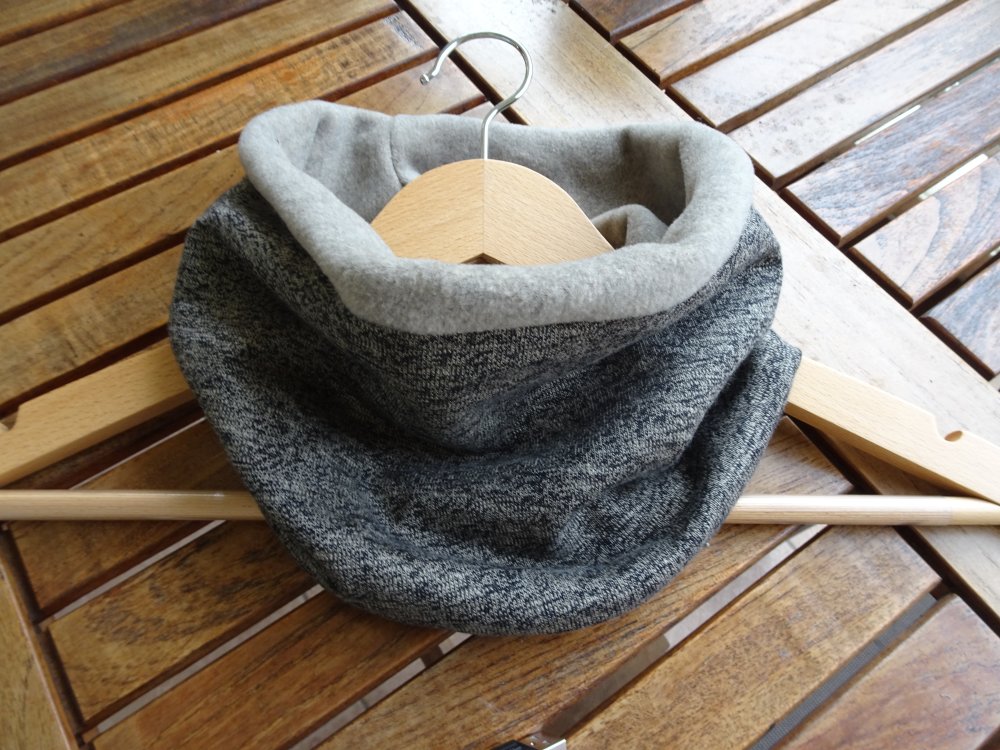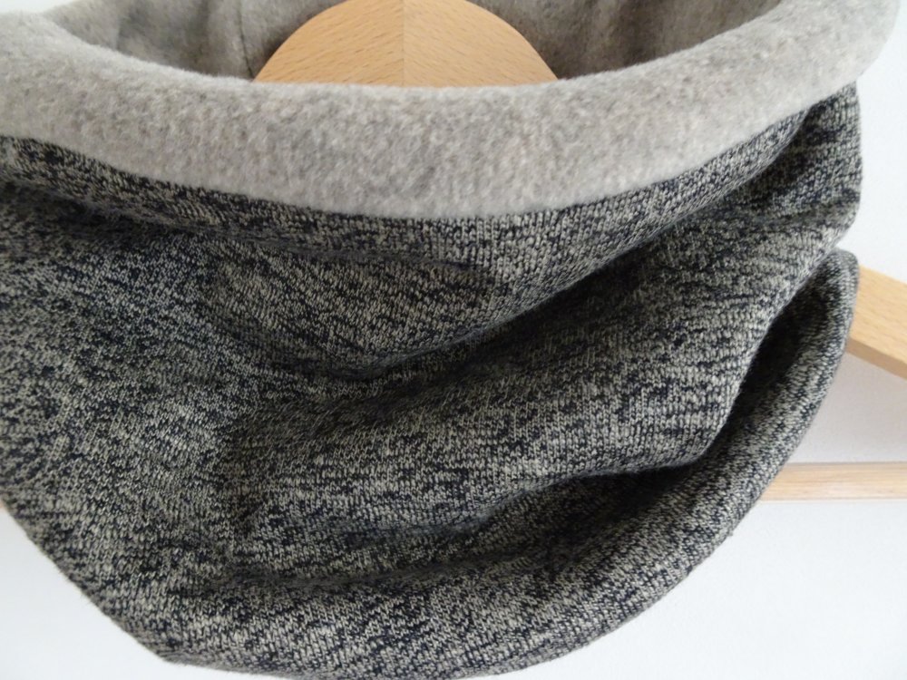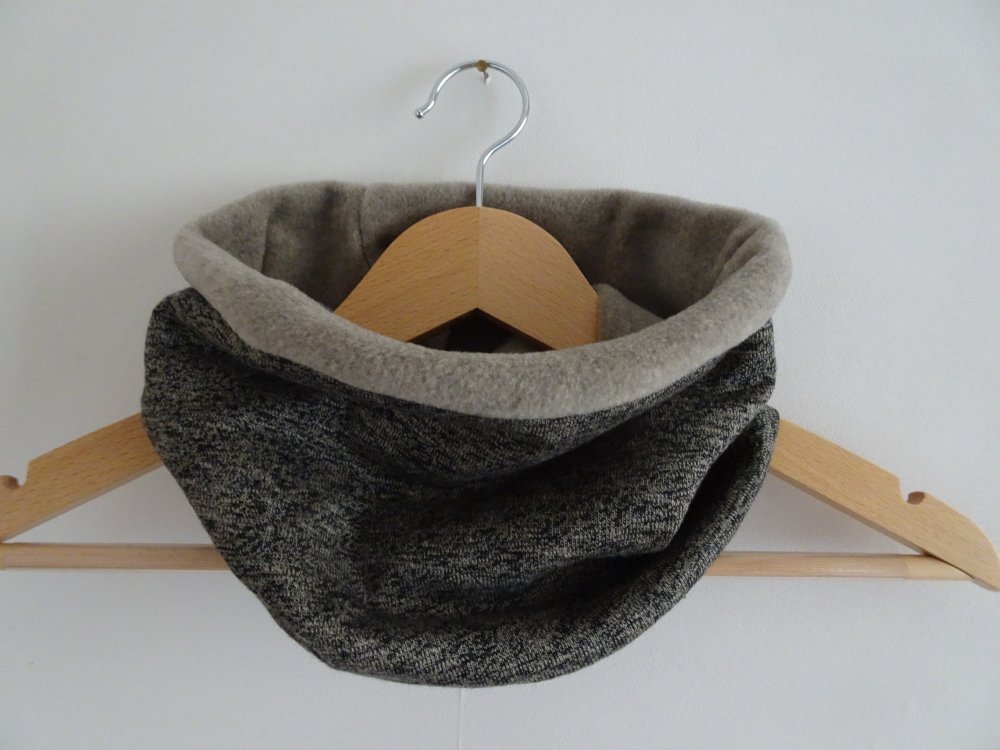 snood deux tissus : un jersey beigne chiné et une polaire beige