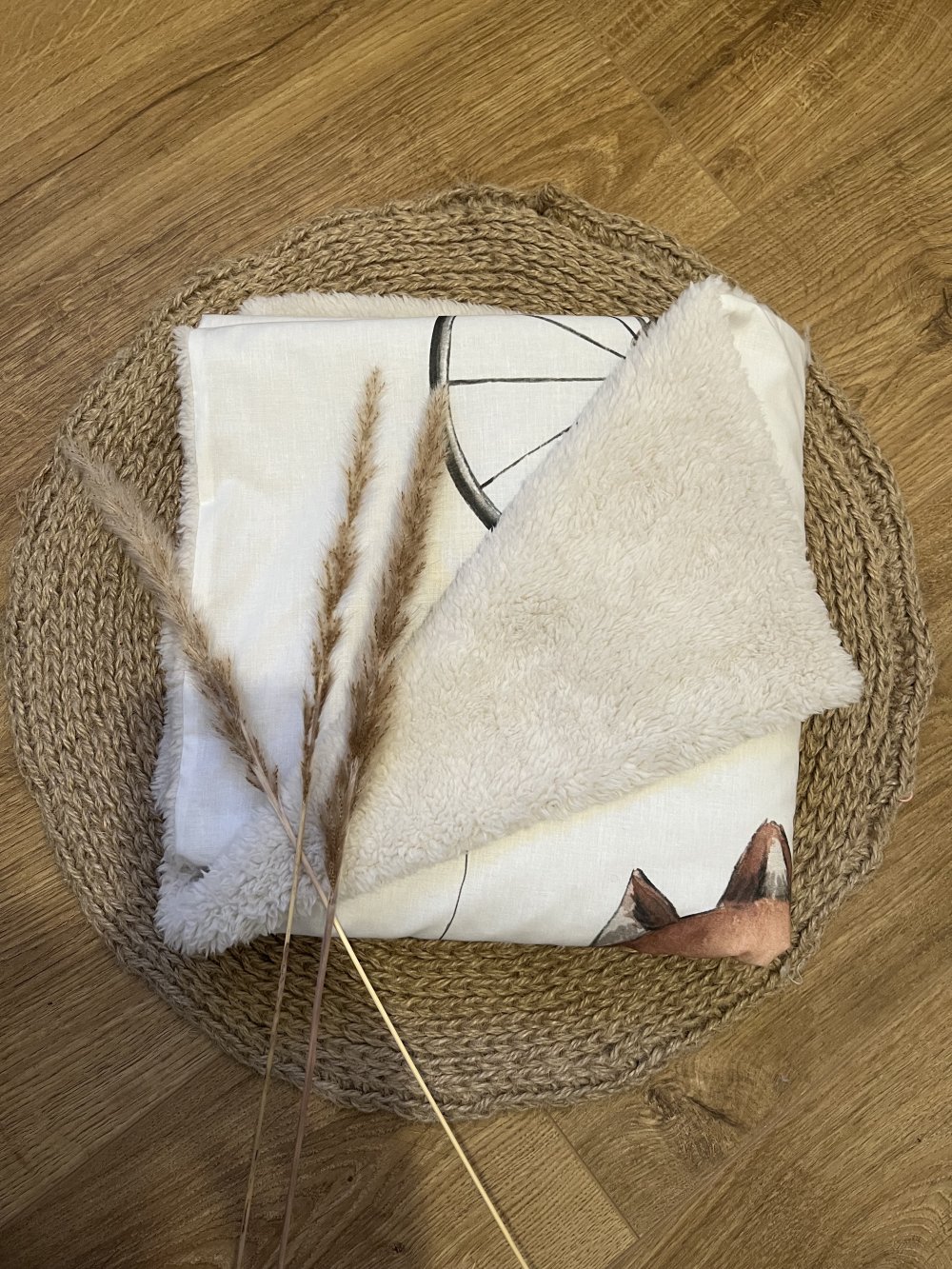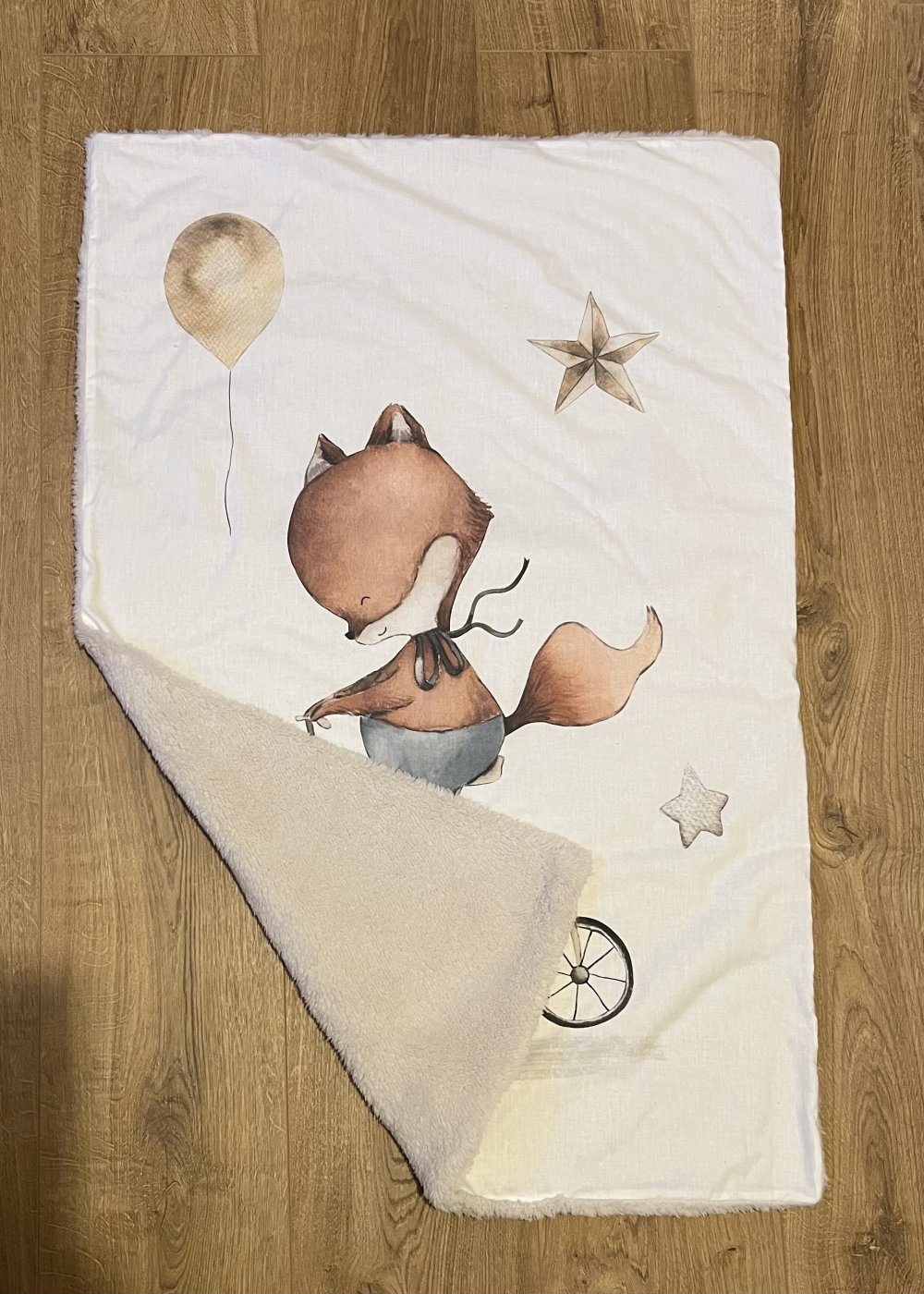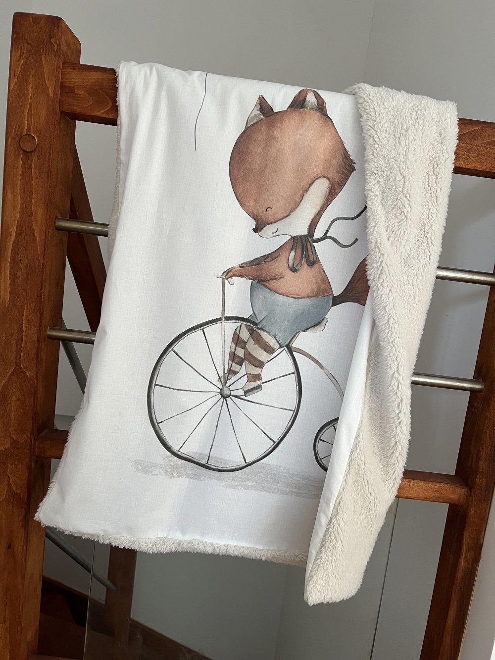 Offrez à bébé un cocon de douceur avec cette couverture confectionnée avec soin. Elle est composée d'un tissu Oeko-Tex imprimé d'un adorable renard sur un grand vélo, associé à un tissu fausse fourrure ultra doux pour un maximum de confort.