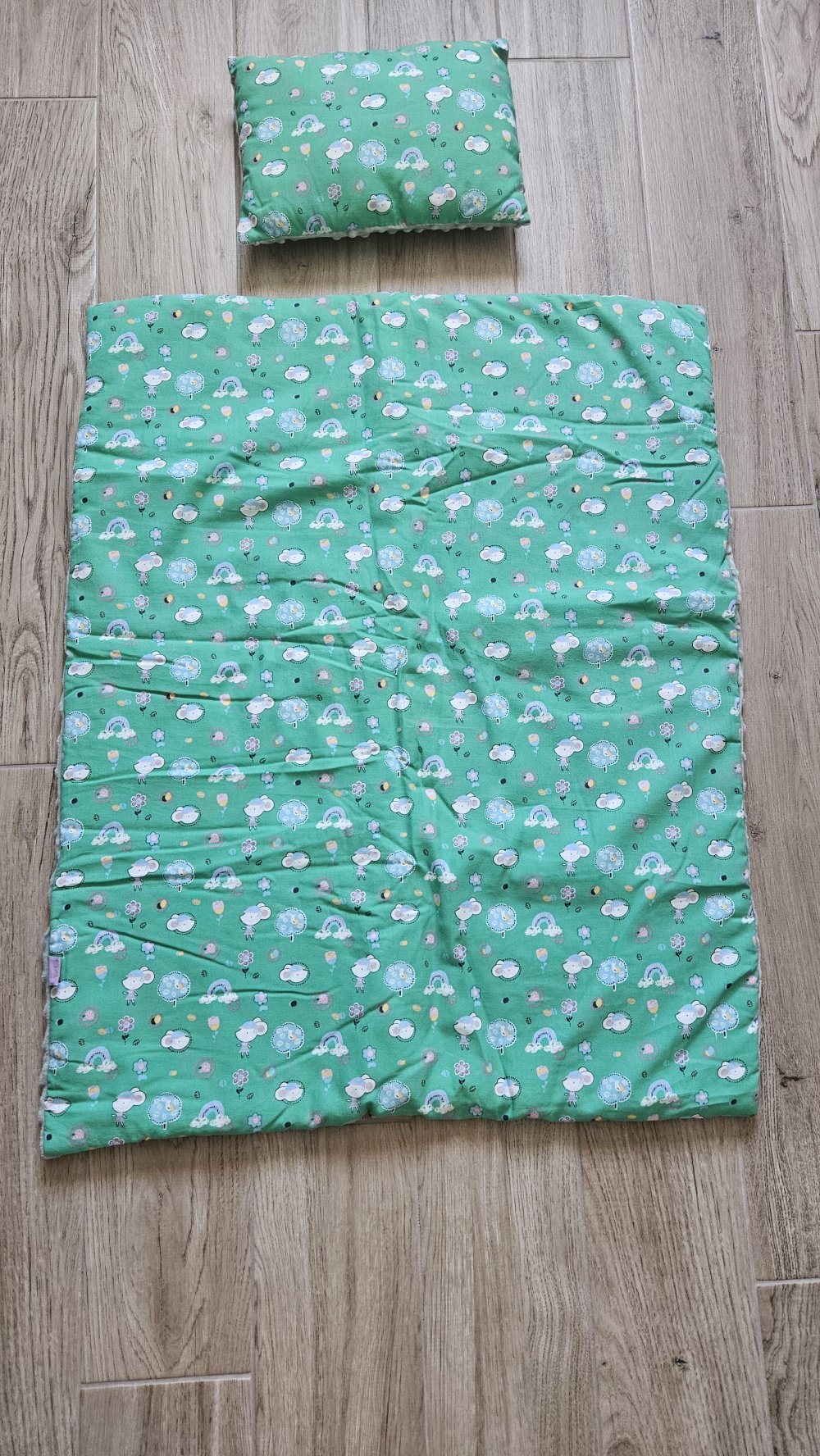 Découvrez notre jolie couverture pour bébé, confectionnée avec un coton imprimé d'un côté et du minky doux de l'autre.