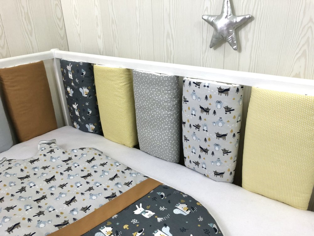 Les tours de lit sont réalisés avec des matériaux certifiés Oeko-Tex en coton et ouate standard 100 classe 1, destinée aux produits de puériculture. A attacher soigneusement aux barreaux avec les liens de longueur réglementaire