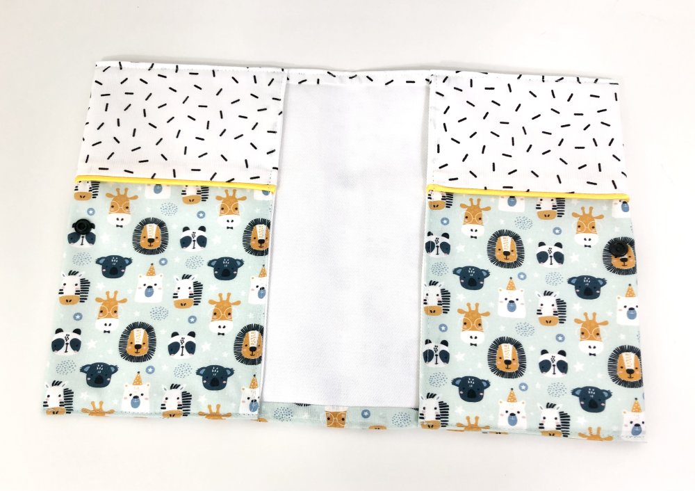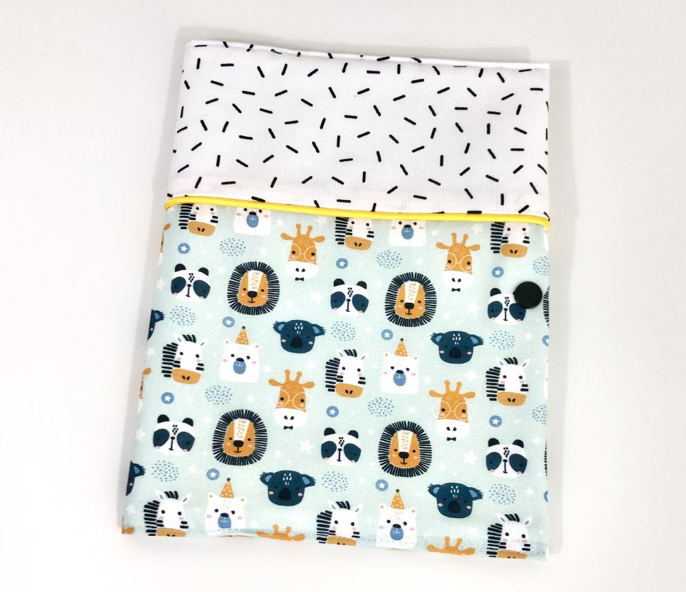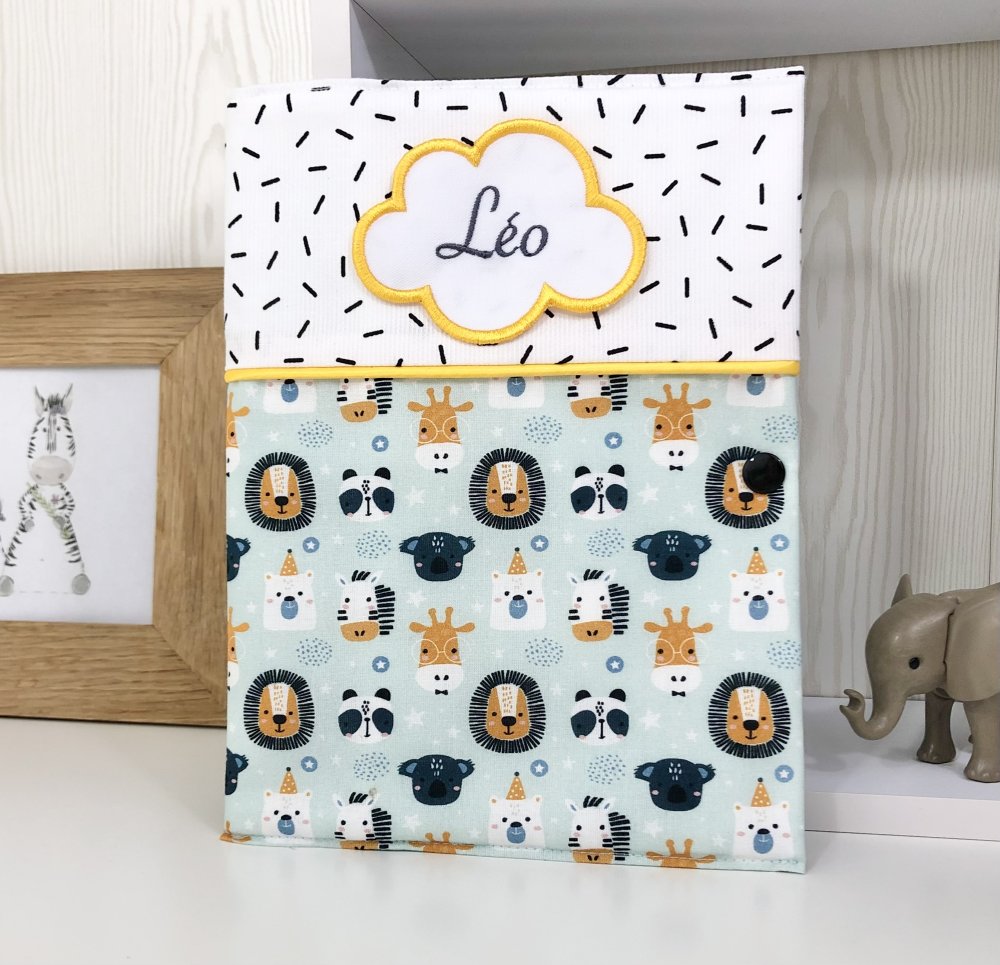 Un protège carnet de santé réalisé à la commande, à motif animaux de la jungle